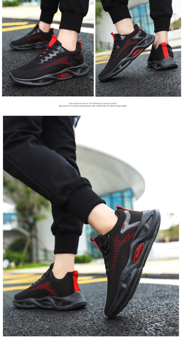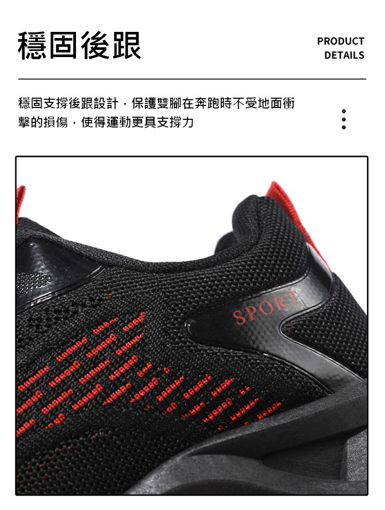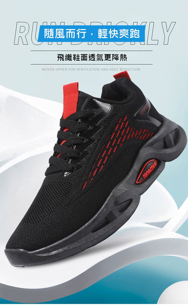【隨風而行,輕快爽跑】男士飛織鞋面輕盈柔軟運動鞋【黑紅色】一雙