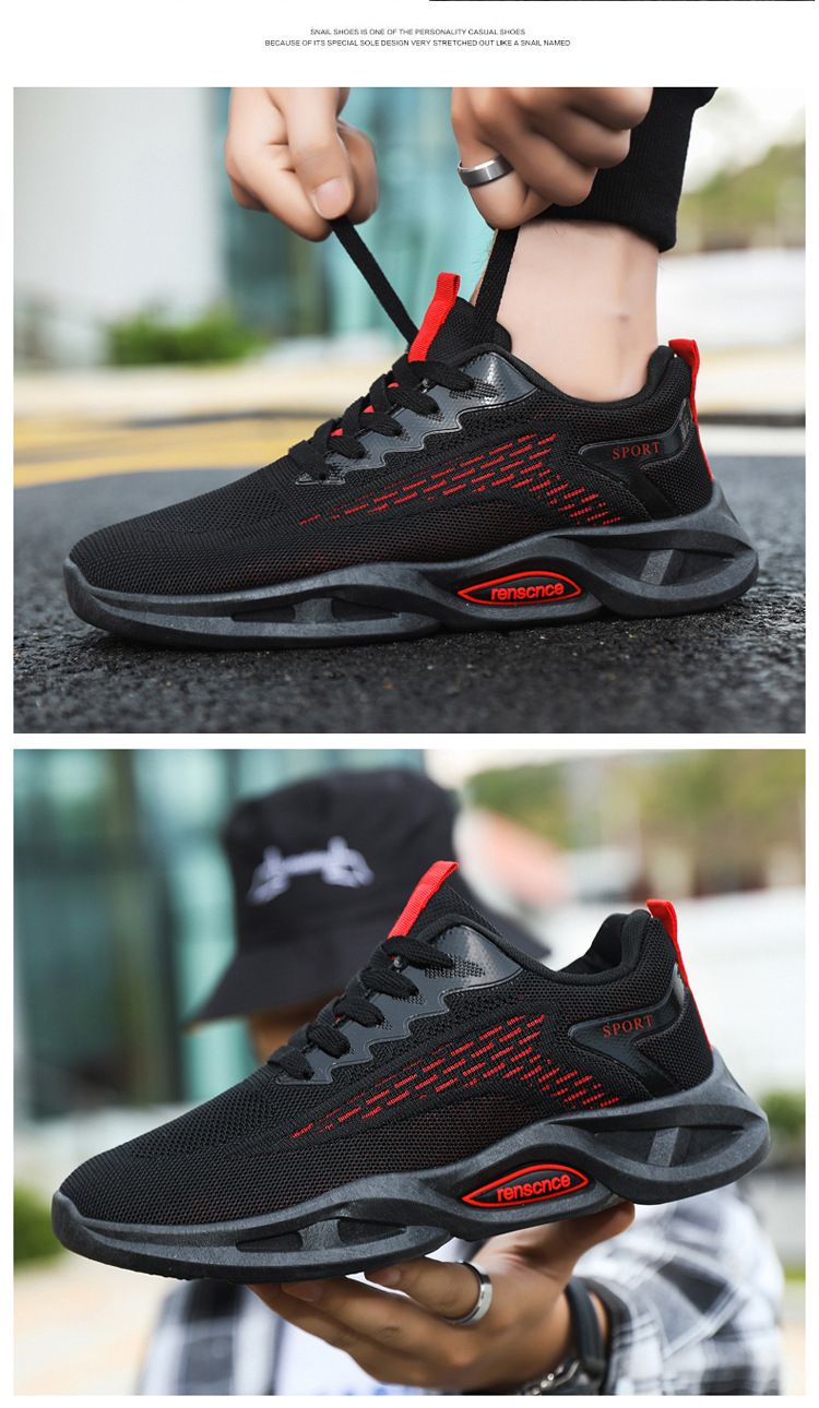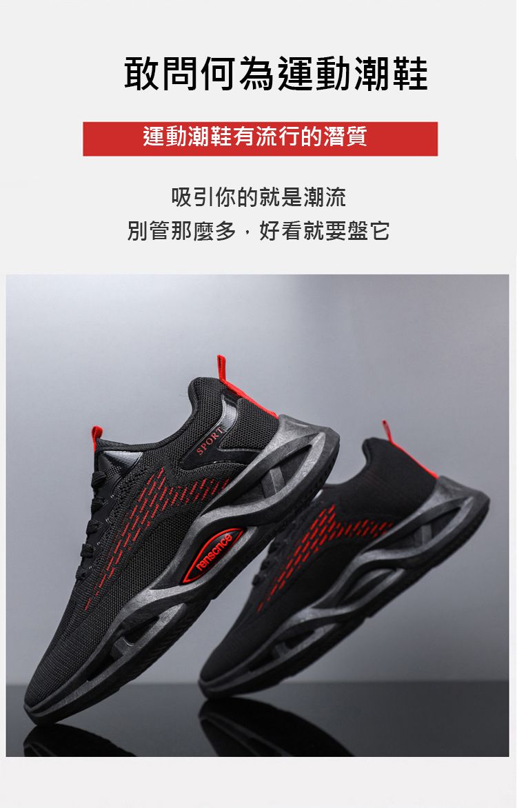 【隨風而行,輕快爽跑】男士飛織鞋面輕盈柔軟運動鞋【黑白色】+【黑紅色】各一雙(優惠400)
