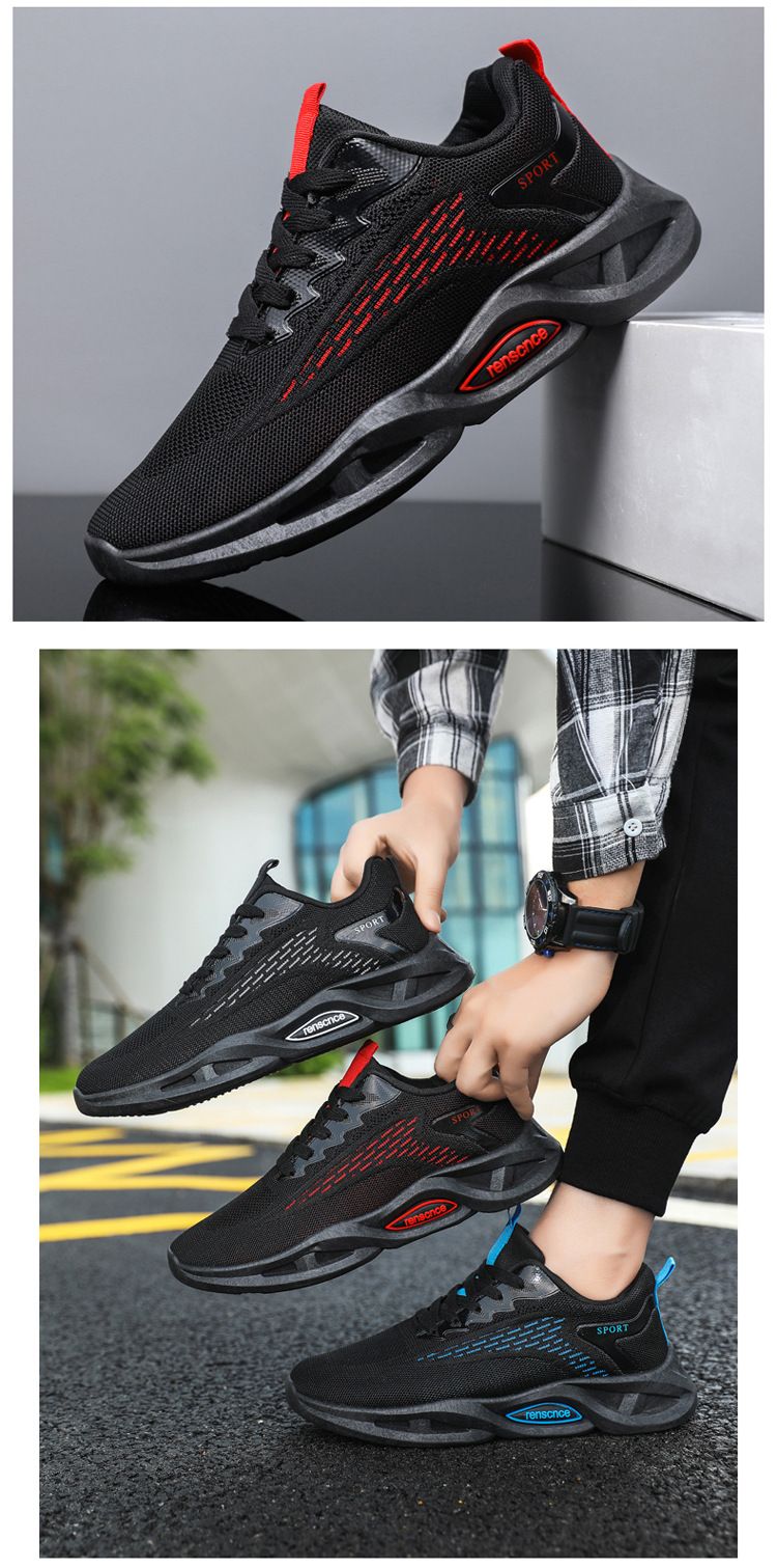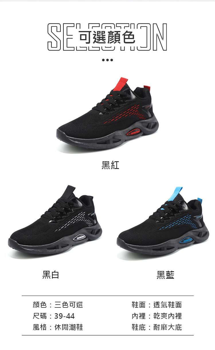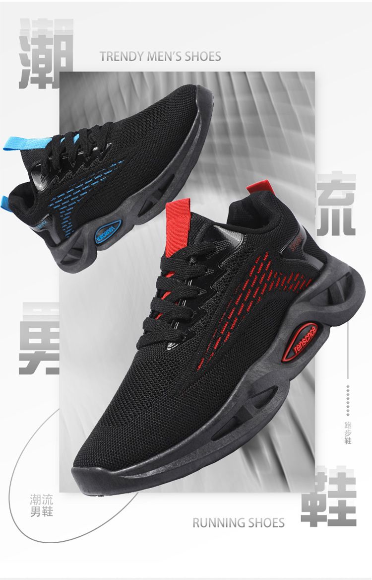 【隨風而行,輕快爽跑】男士飛織鞋面輕盈柔軟運動鞋【黑紅色】+【黑藍色】各一雙(優惠400)