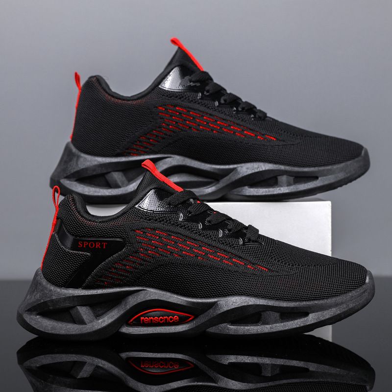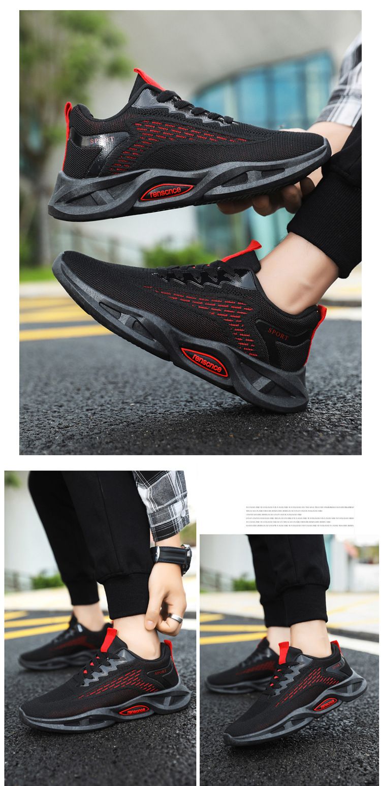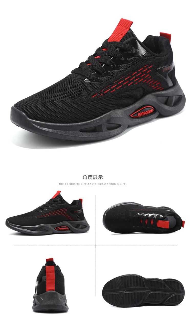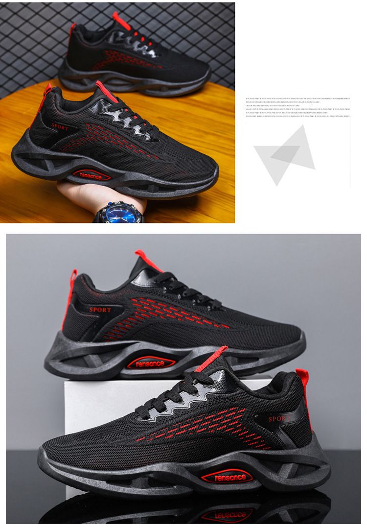 【隨風而行,輕快爽跑】男士飛織鞋面輕盈柔軟運動鞋【黑紅色】+【黑藍色】各一雙(優惠400)