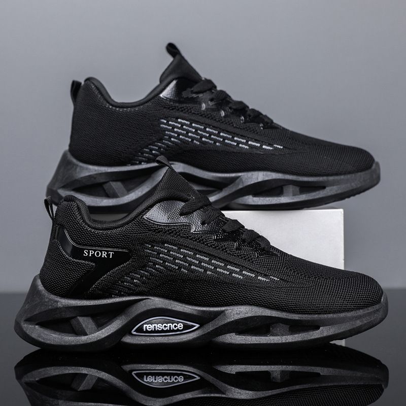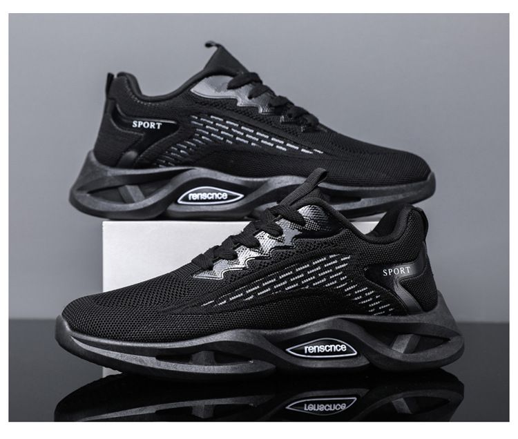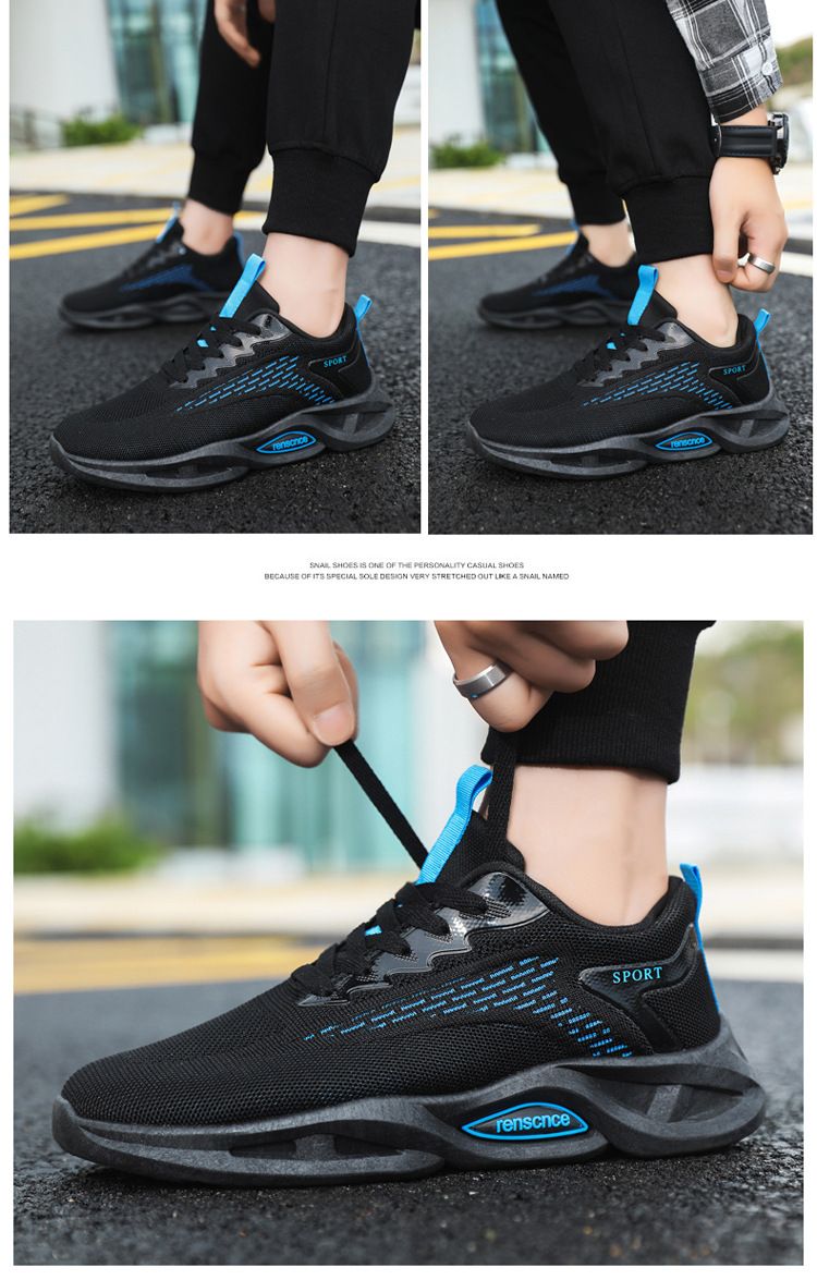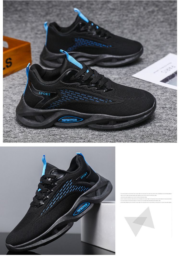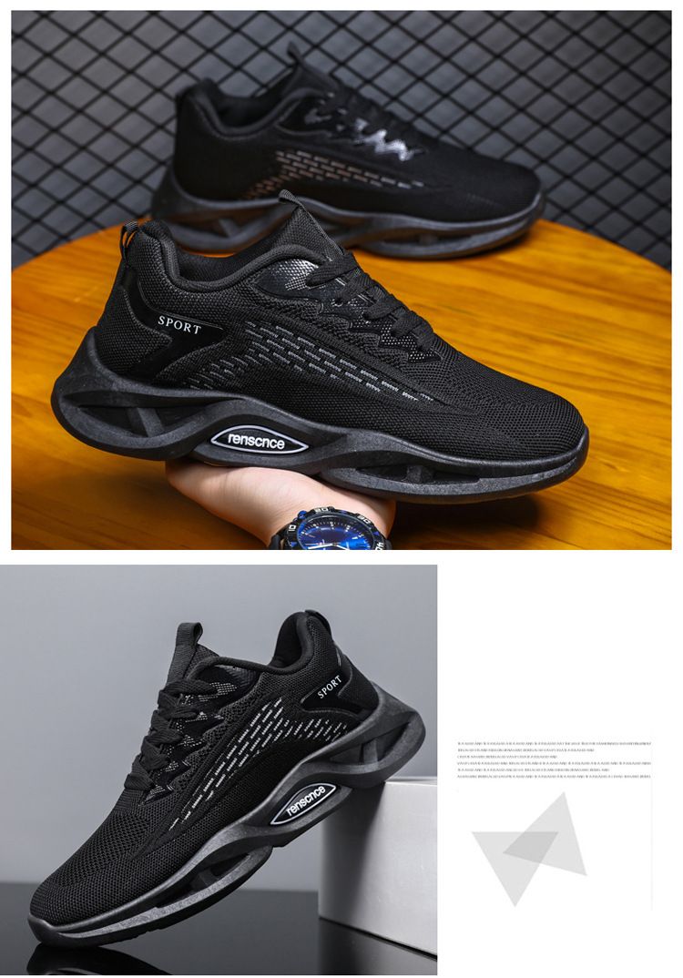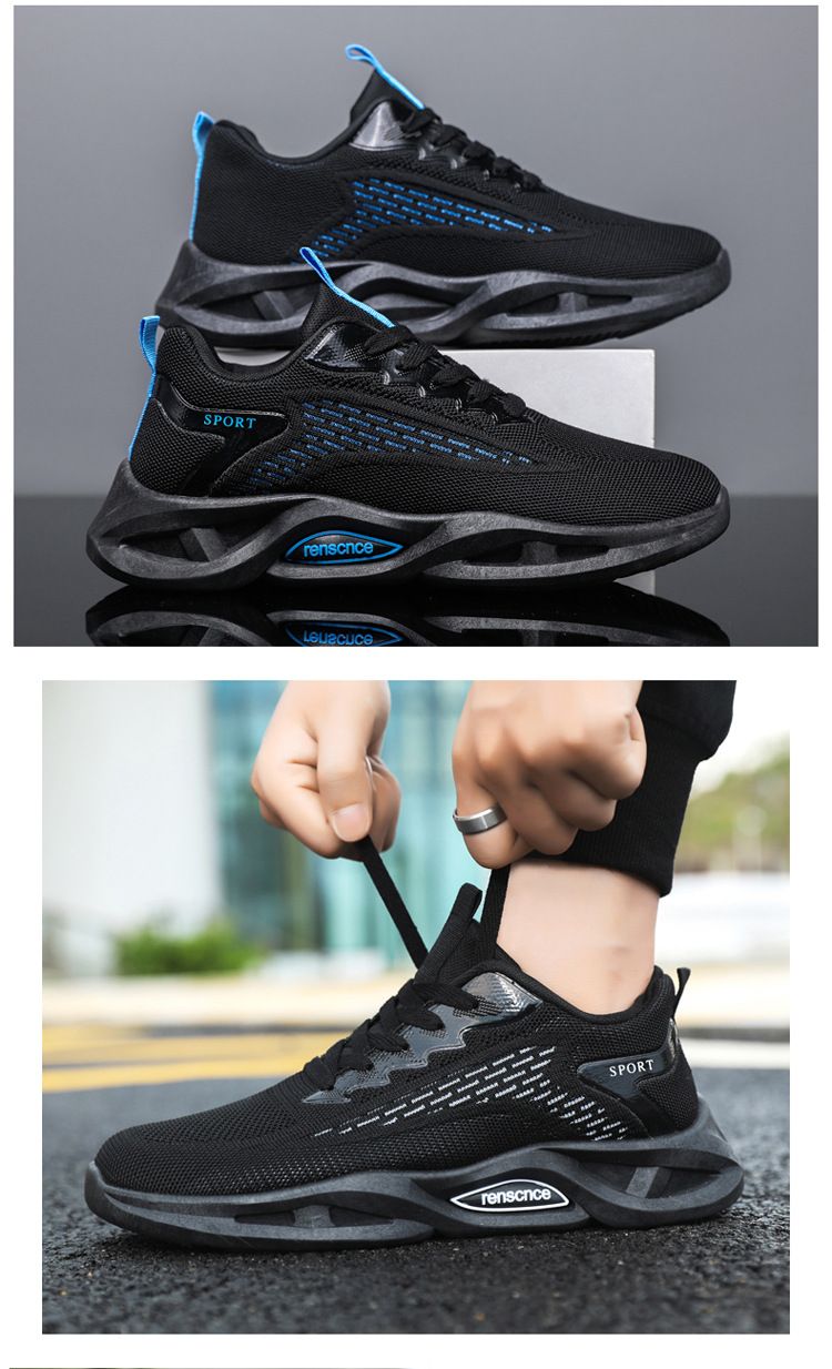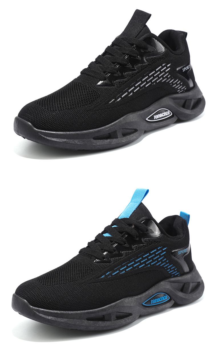 【隨風而行,輕快爽跑】男士飛織鞋面輕盈柔軟運動鞋【黑白色】+【黑藍色】各一雙(優惠400)