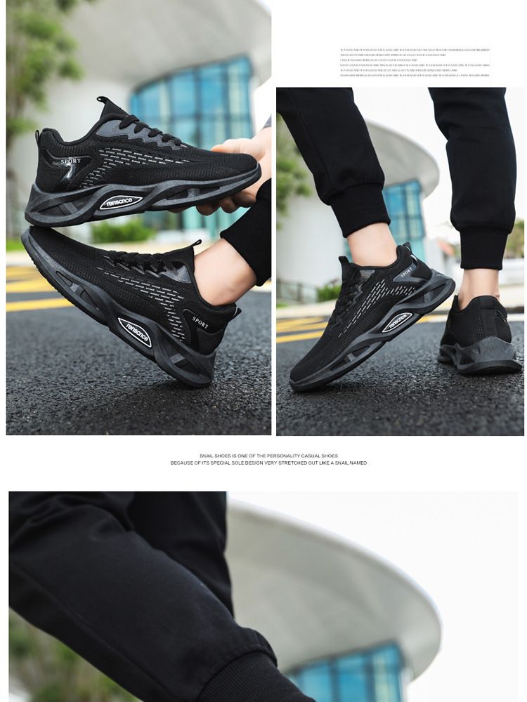 【隨風而行,輕快爽跑】男士飛織鞋面輕盈柔軟運動鞋【黑白色】一雙