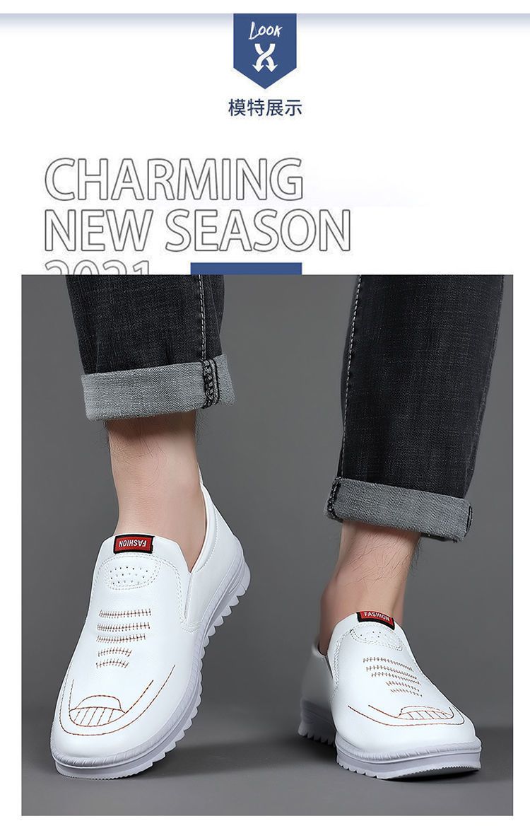 男士商務休閒駕車防滑軟底純牛皮鞋【買一送一】【白色】兩雙
