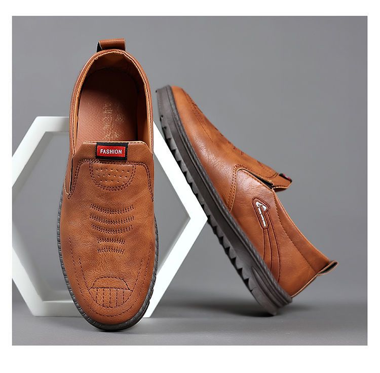 男士商務休閒駕車防滑軟底純牛皮鞋【買一送一】【棕色】+【白色】各一雙