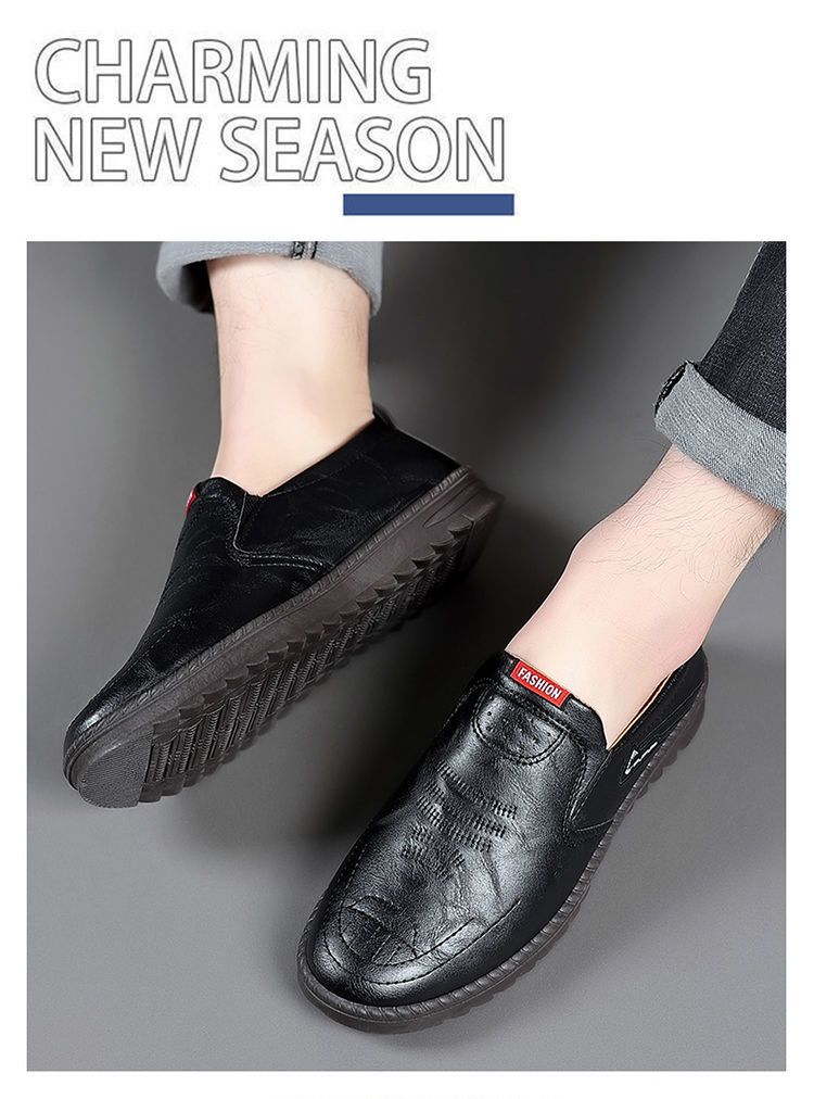 男士商務休閒駕車防滑軟底純牛皮鞋【買一送一】【黑色】+【白色】各一雙