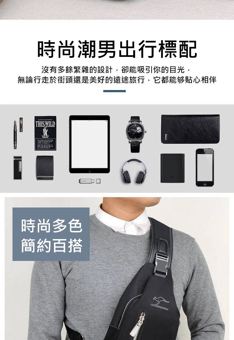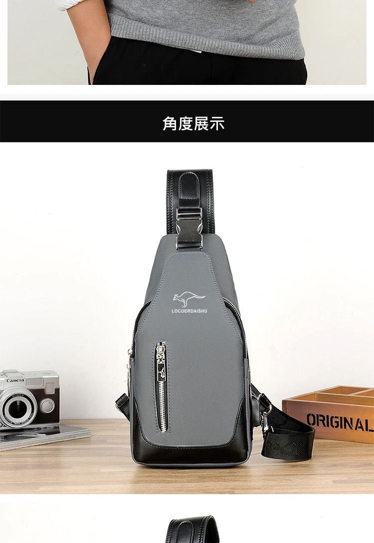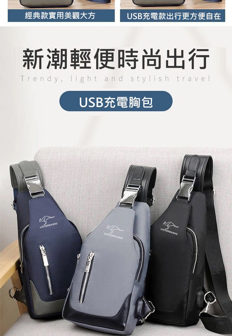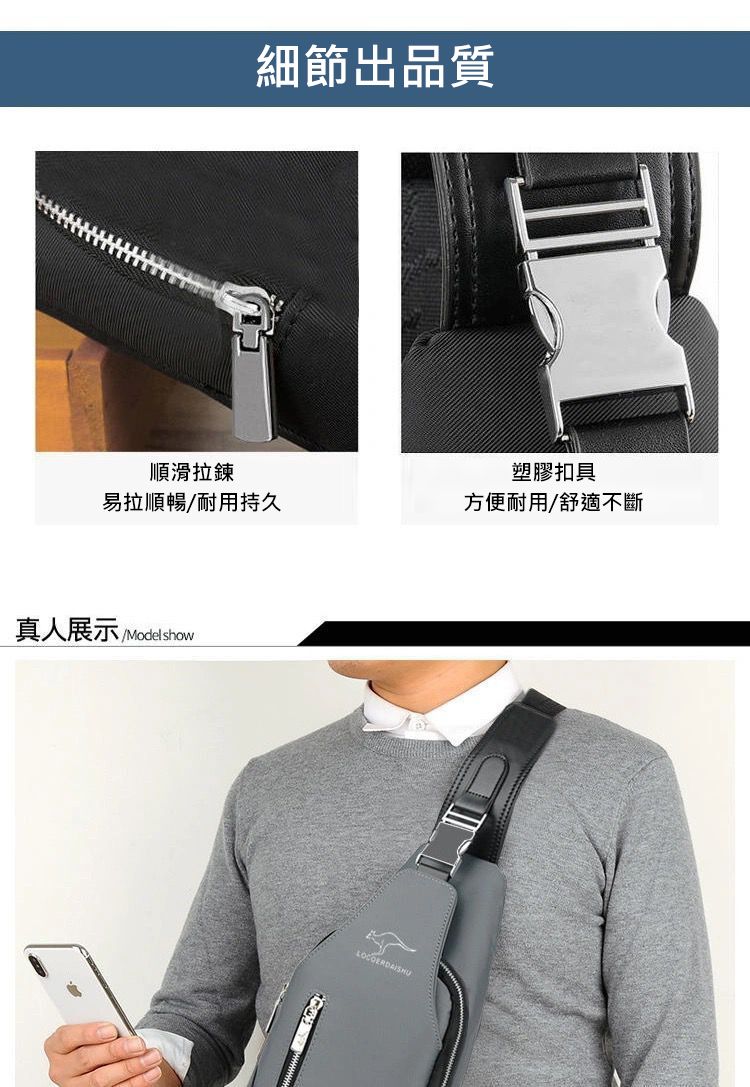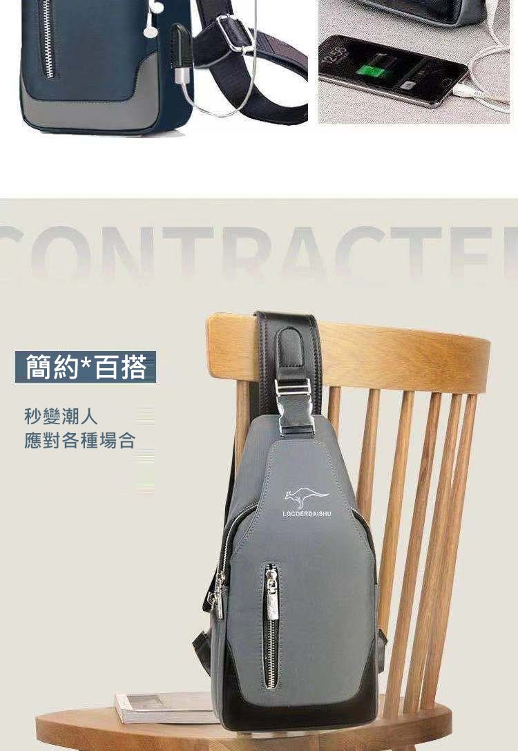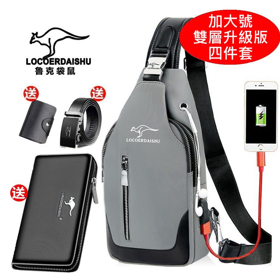 韓版單肩男包【買一送三】四件套【灰色雙層usb大號升級款】