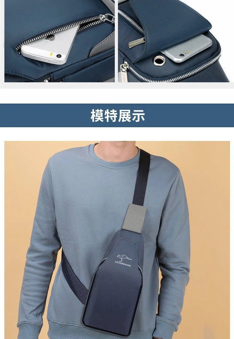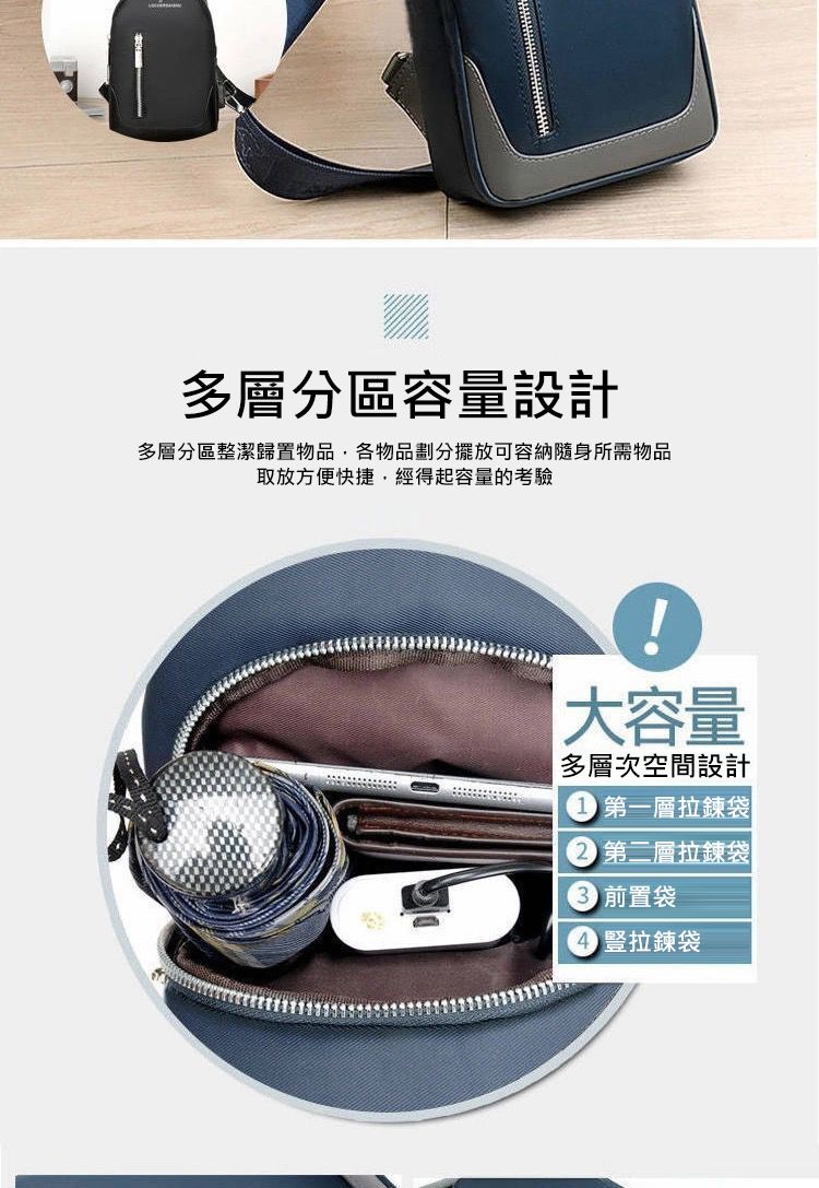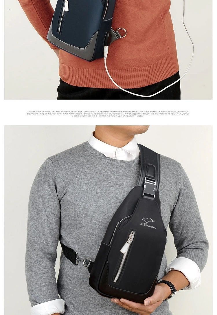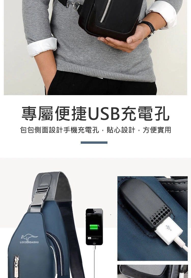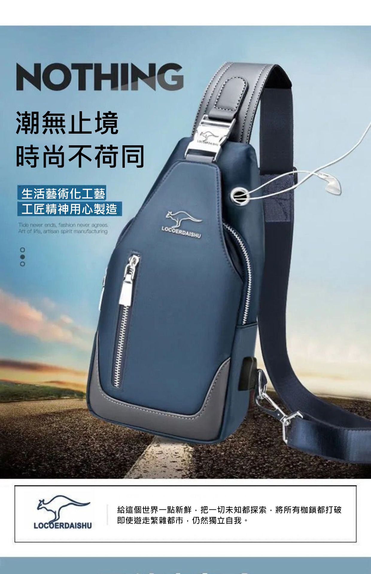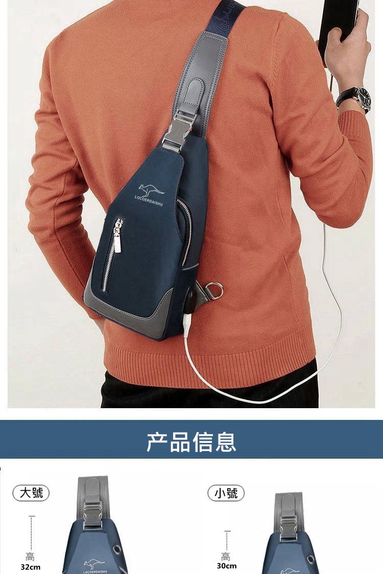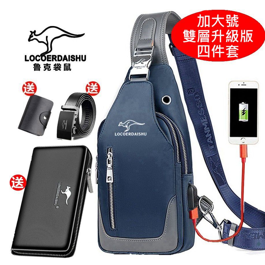 韓版單肩男包【買一送三】四件套【藍色雙層usb大號升級款】