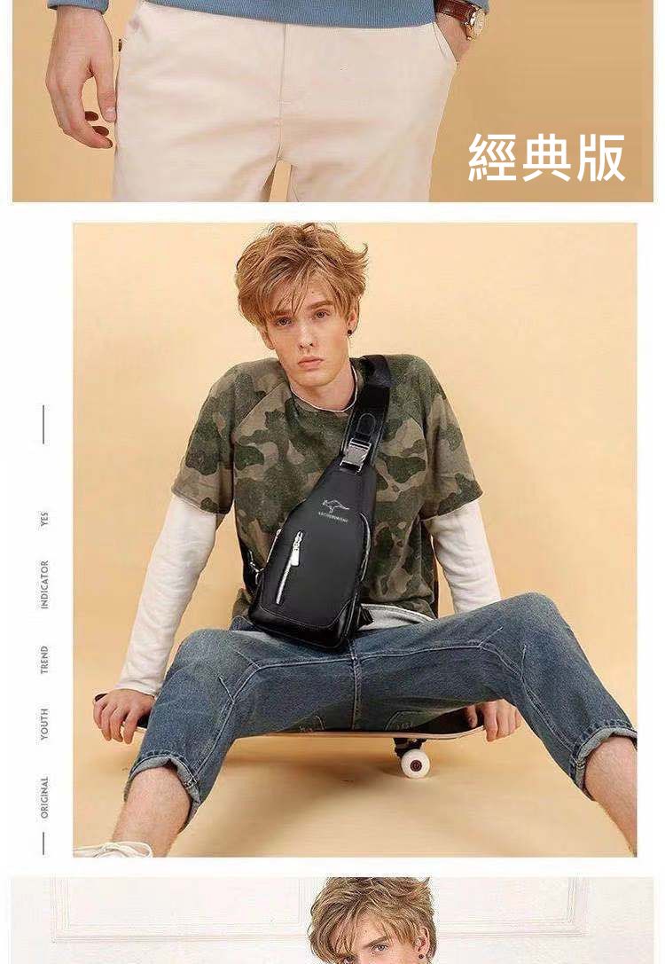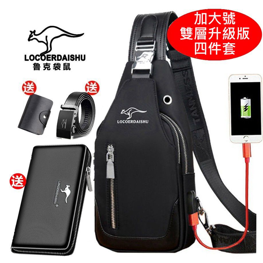 韓版單肩男包【買一送三】四件套【黑色雙層usb大號升級款】