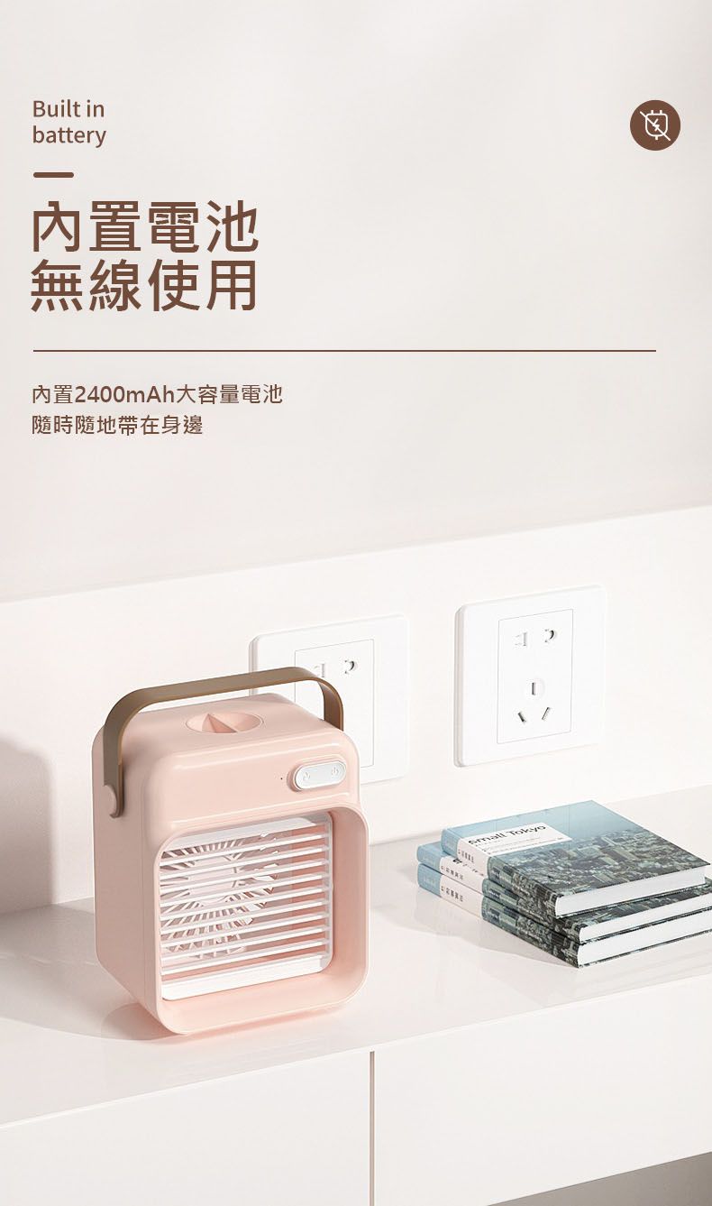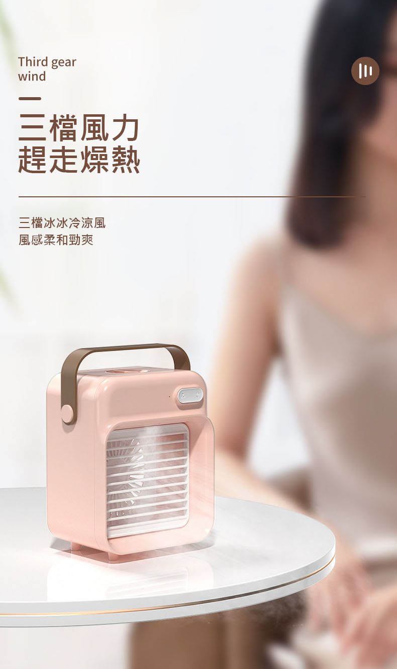 三檔靜音噴霧加濕冷風機【粉色充電款】一組