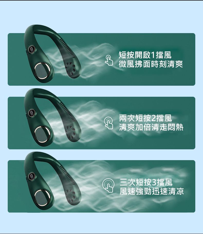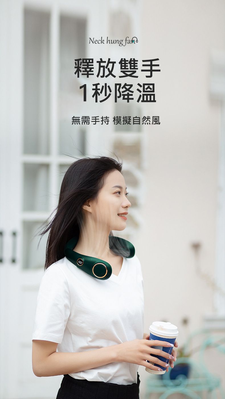 新款usb便攜數顯無葉掛脖風扇【暗夜綠】+【茉香綠】各一組(優惠400)