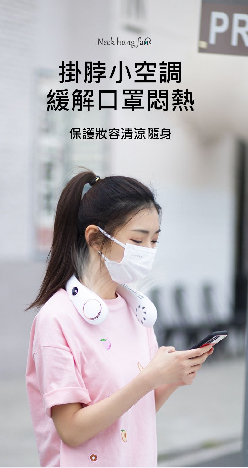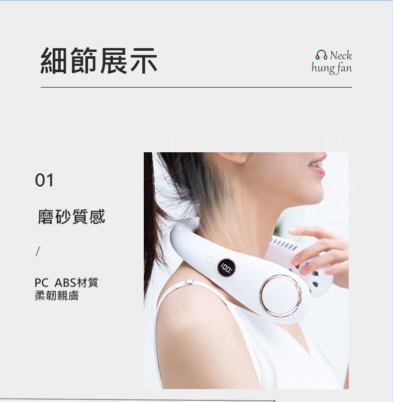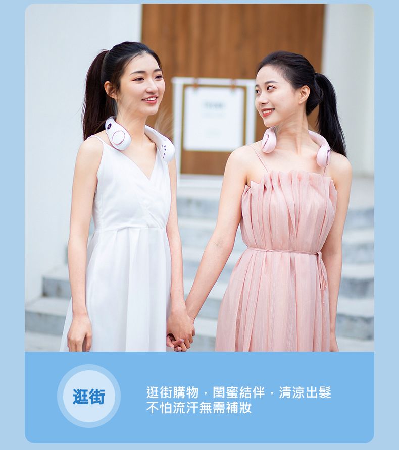 新款usb便攜數顯無葉掛脖風扇【冰川白】+【櫻花粉】各一組(優惠400)