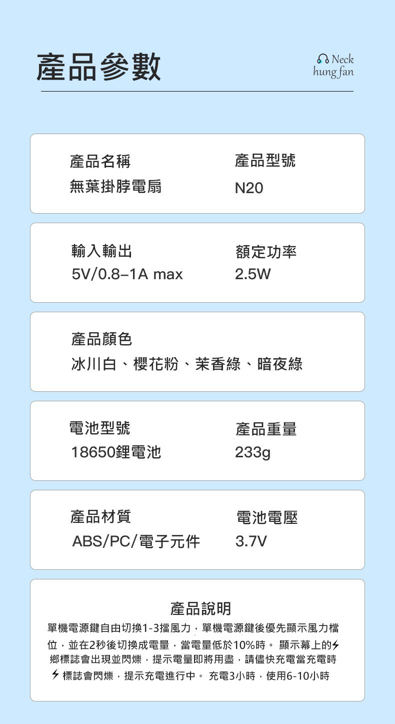新款usb便攜數顯無葉掛脖風扇【冰川白】+【茉香綠】各一組(優惠400)