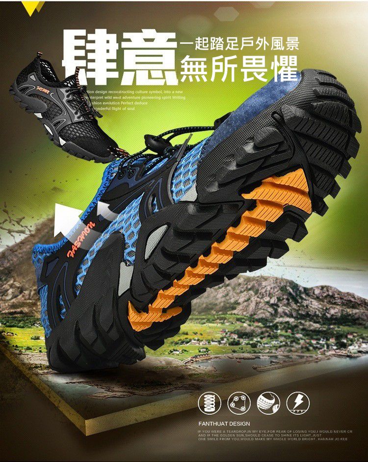 新款男士網面透氣爬山涉水溯溪鞋【灰色】+【藍色】各一雙(優惠400)