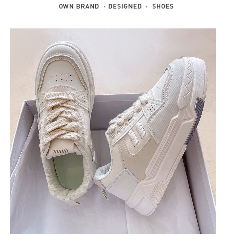 【各種場合隨心穿!】新款女士春季韓版休閒板鞋【米色】+【米綠色】各一雙(優惠400)