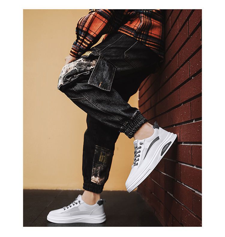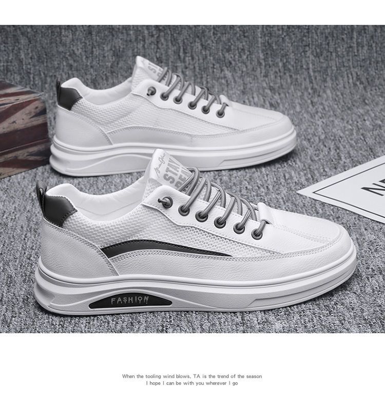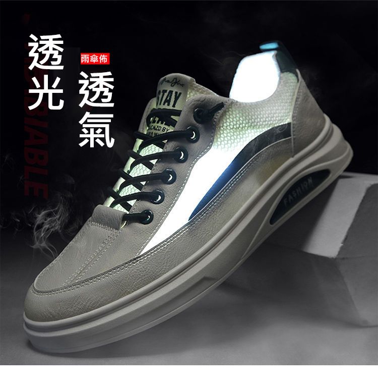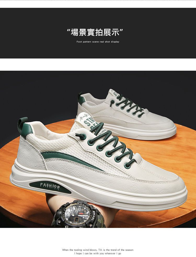 【透光透氣百搭】春季新款男士皮革網布運動鞋【白色】一雙