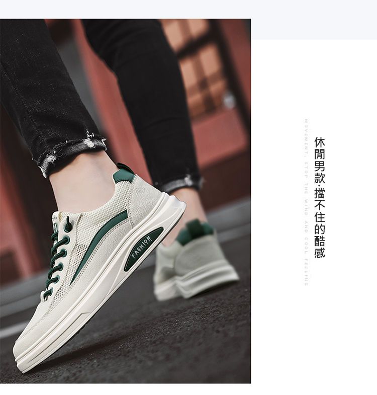 【透光透氣百搭】春季新款男士皮革網布運動鞋【白色】+【米色】各一雙(優惠400)