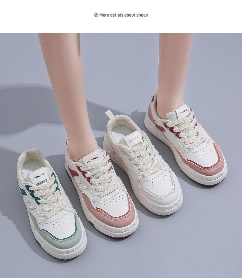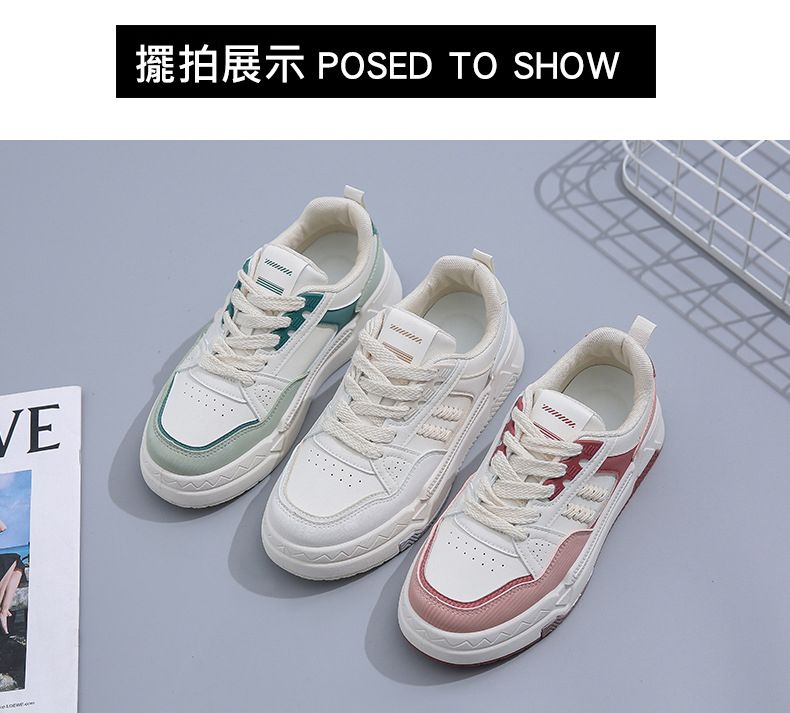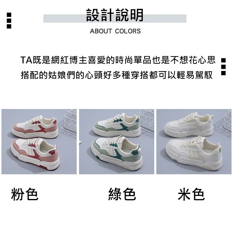 【0退貨!】女士韓版厚底休閒運動板鞋【米粉色】+【米綠色】各一雙(優惠400)