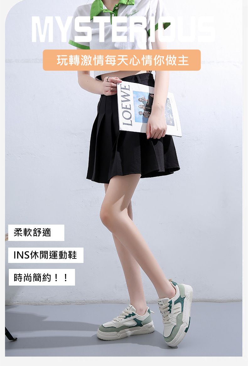 【0退貨!】女士韓版厚底休閒運動板鞋【米綠色】+【米色】各一雙(優惠400)