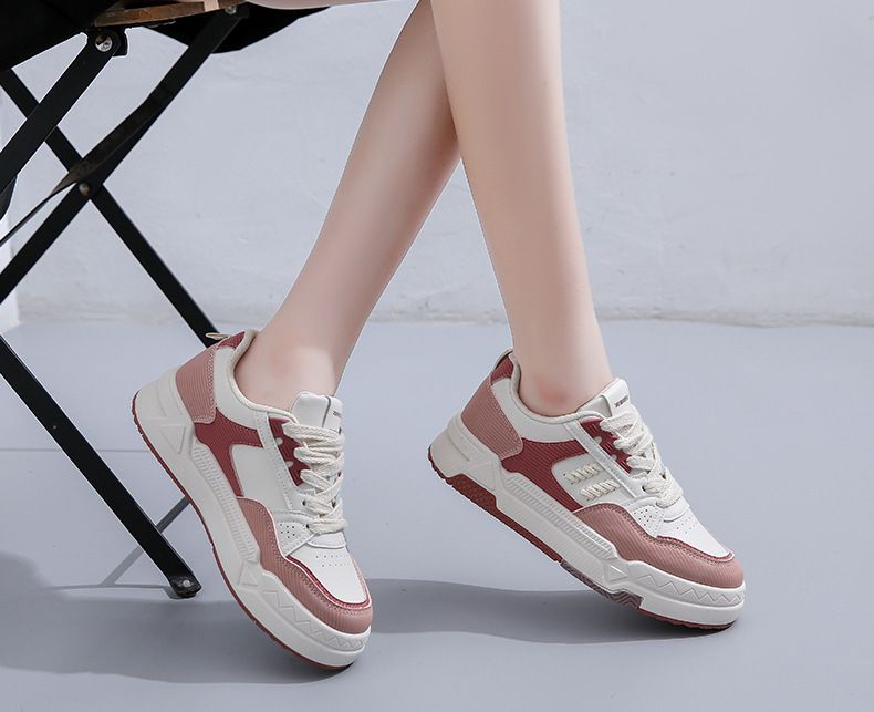 【0退貨!】女士韓版厚底休閒運動板鞋【米粉色】+【米色】各一雙(優惠400)