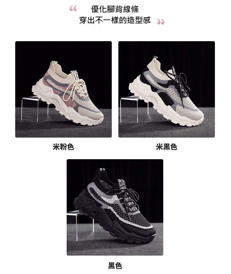 【限時買一送一!】簡約老爹透氣飛織女鞋【黑色】+【米粉】各一雙