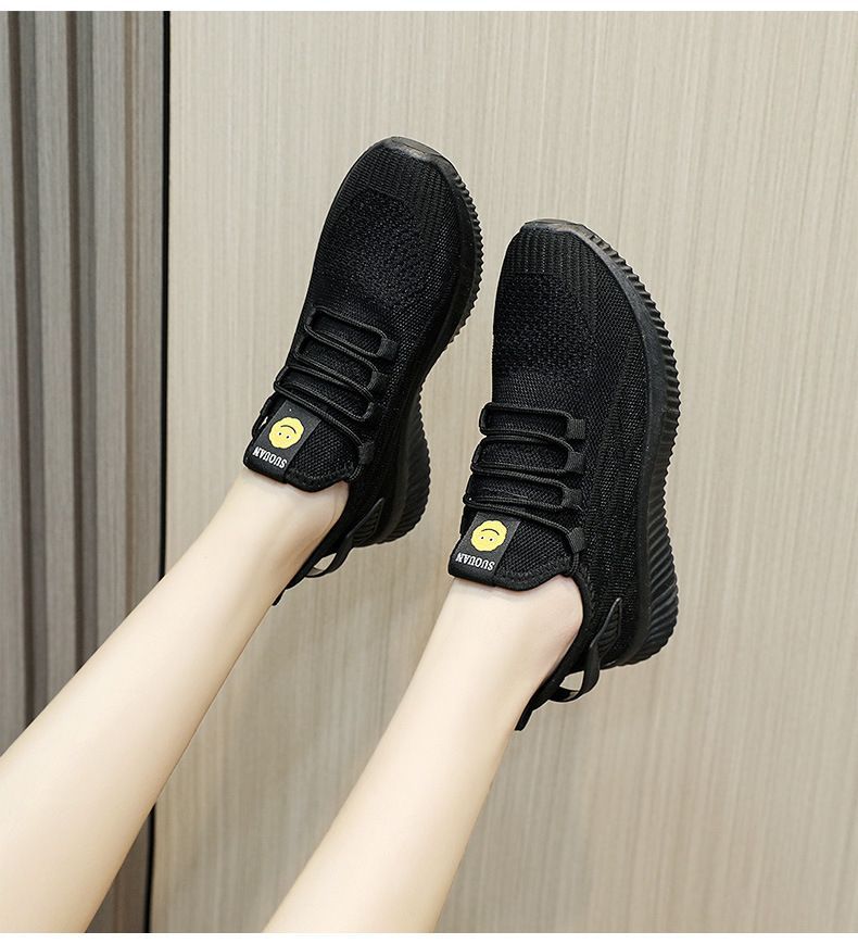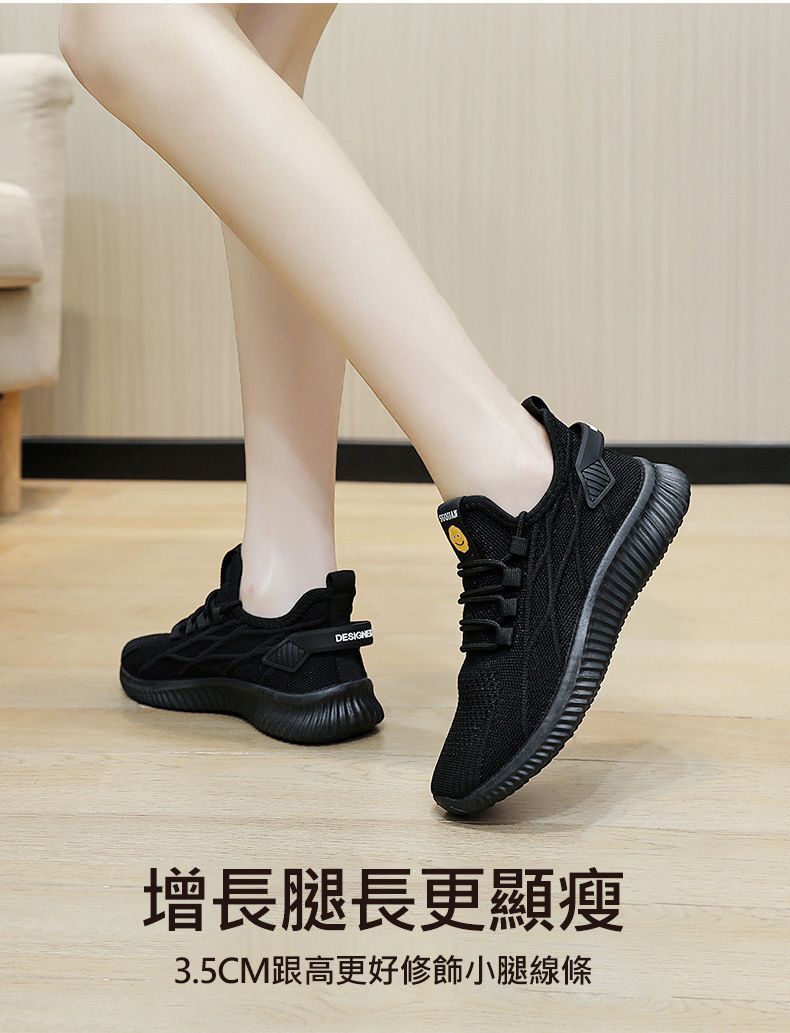 【小個子也能大長腿!】春夏女士新款飛織透氣鞋【黑色】一雙