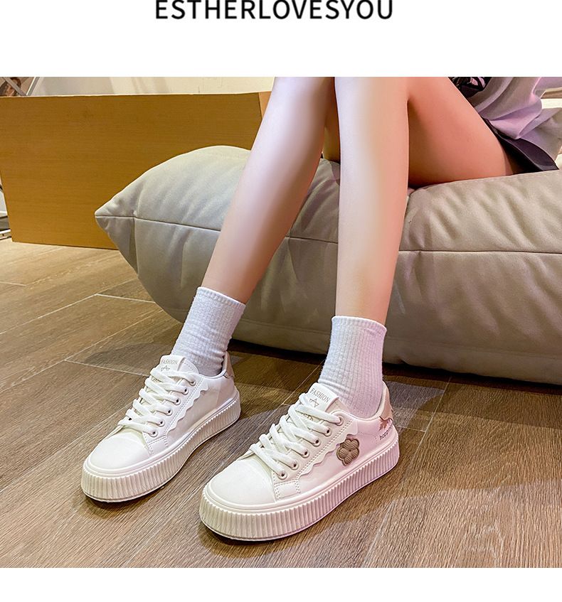 【舒適有顏值!】新款女士厚底增高休閒運動鞋【白粉色】+【卡其色】各一雙(優惠400)