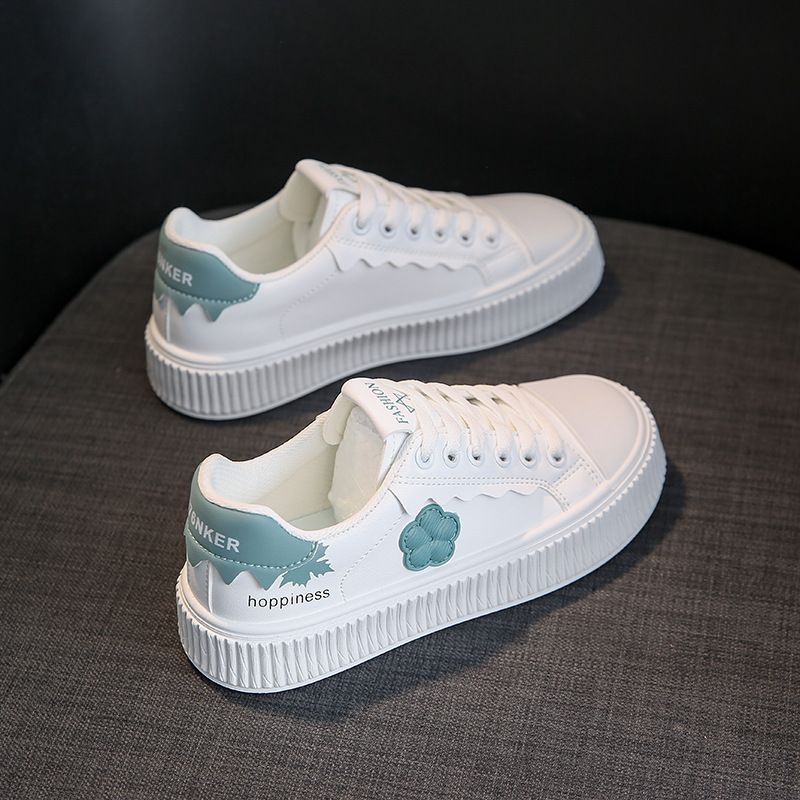 【舒適有顏值!】新款女士厚底增高休閒運動鞋【白綠色】一雙