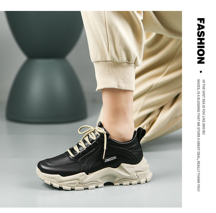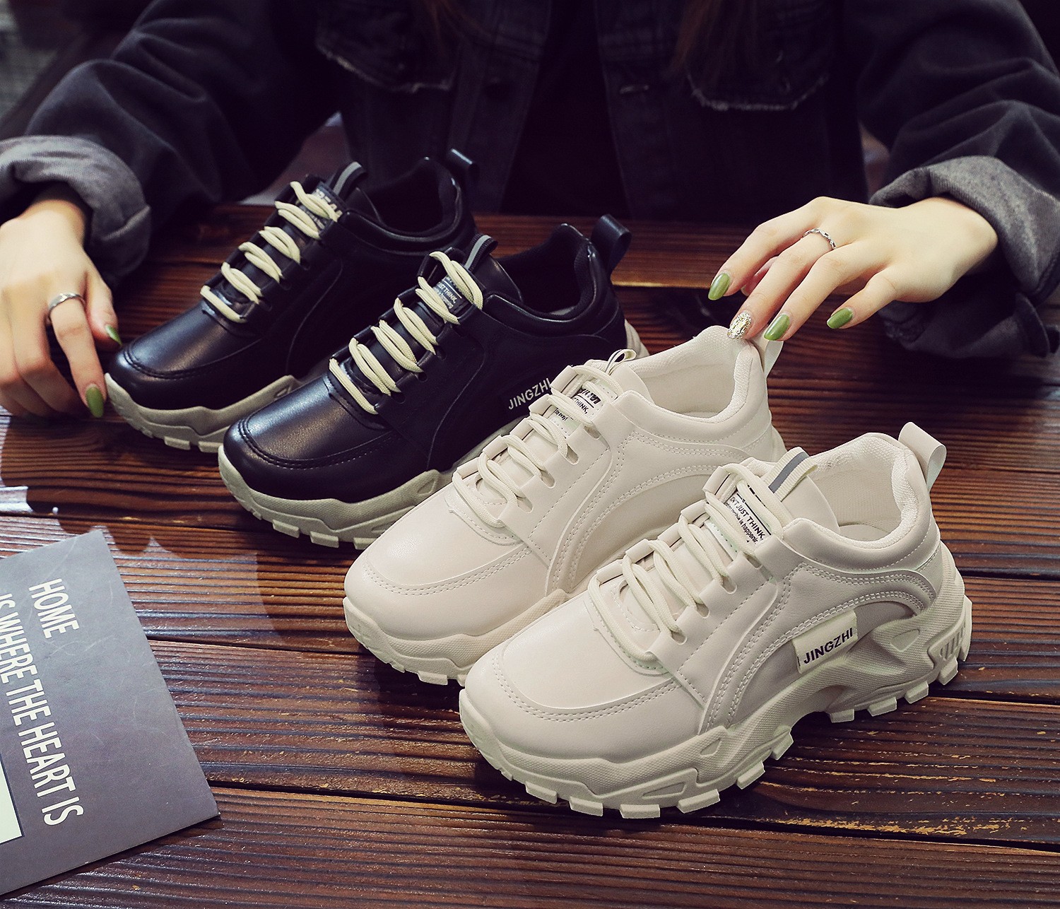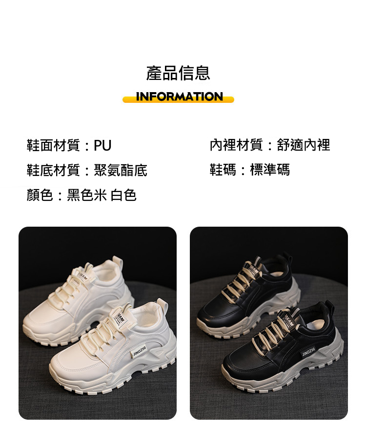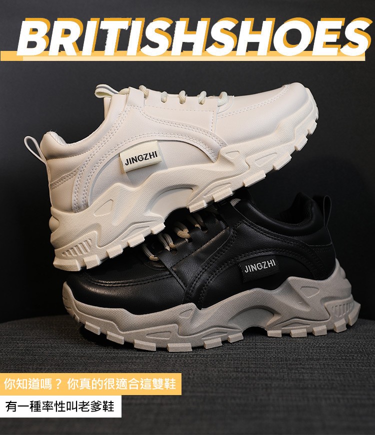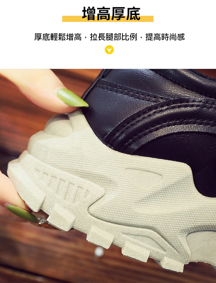 【凹造型必備】女士增高修腿型秋冬厚底老爹鞋【黑色】+【米色】各一雙(優惠400)