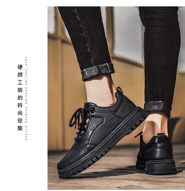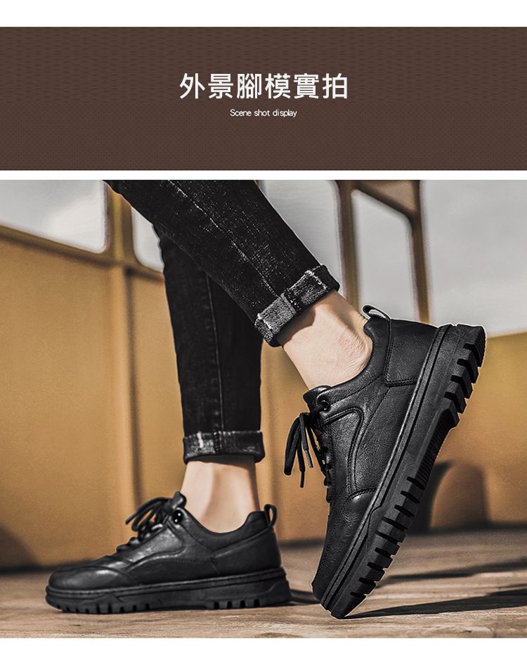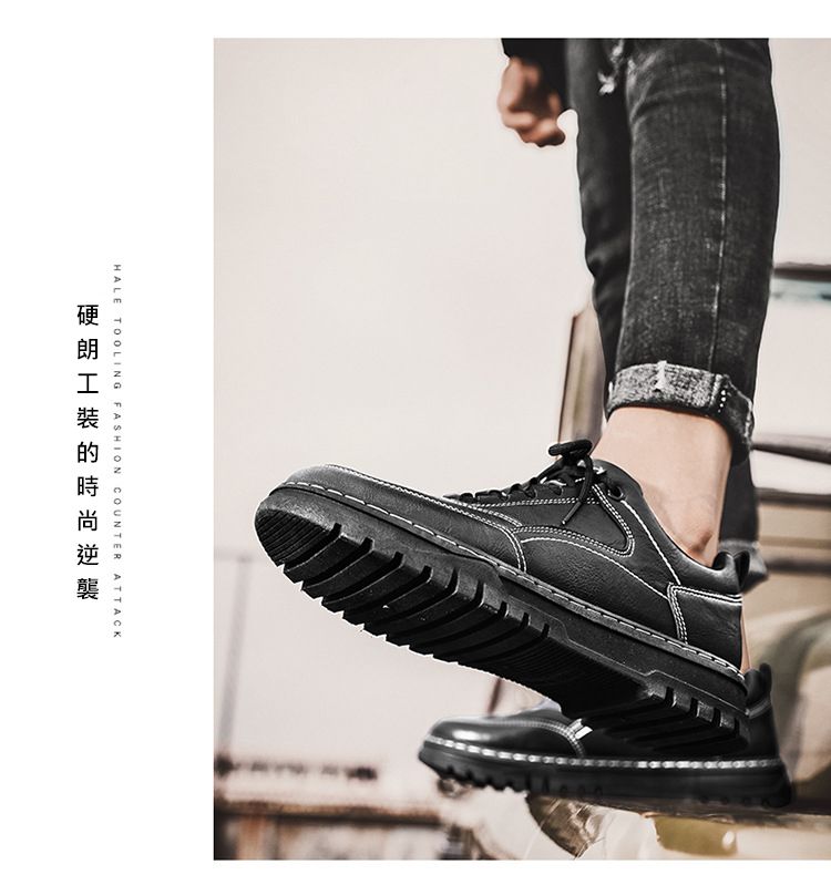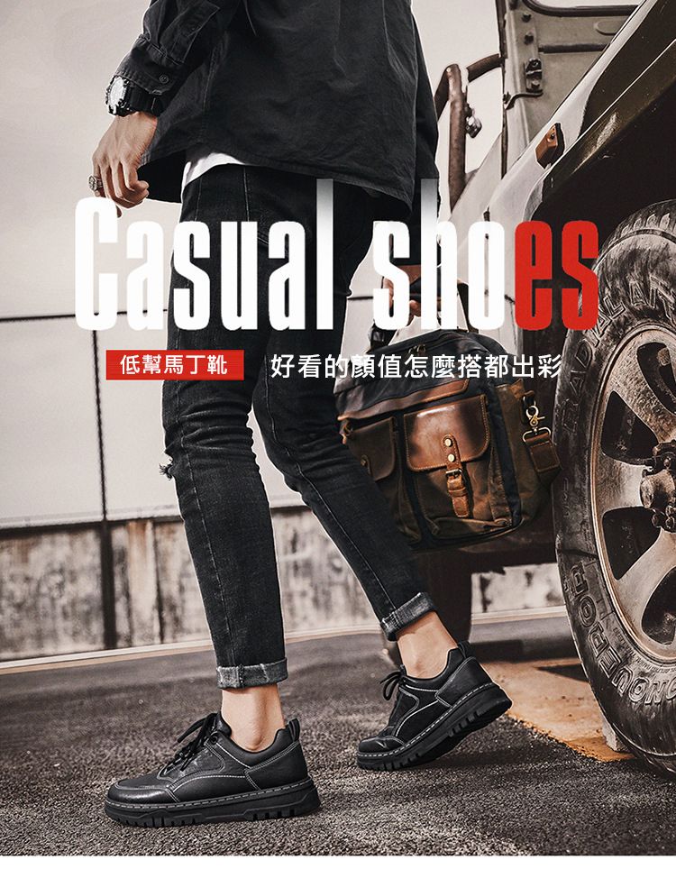 【源頭廠家】細膩皮革鞋面柔軟耐穿大底男士低幫馬丁靴【黑白色】+【全黑色】各一雙(優惠400)