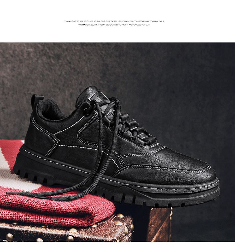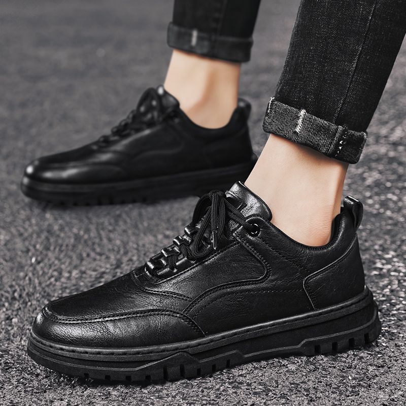 【源頭廠家】細膩皮革鞋面柔軟耐穿大底男士低幫馬丁靴【全黑色】一雙