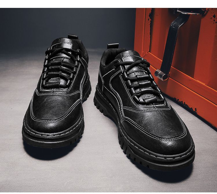 【源頭廠家】細膩皮革鞋面柔軟耐穿大底男士低幫馬丁靴【黑白色】一雙