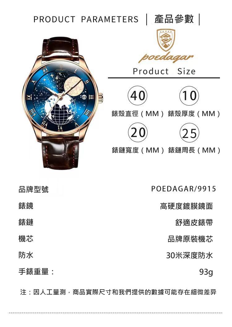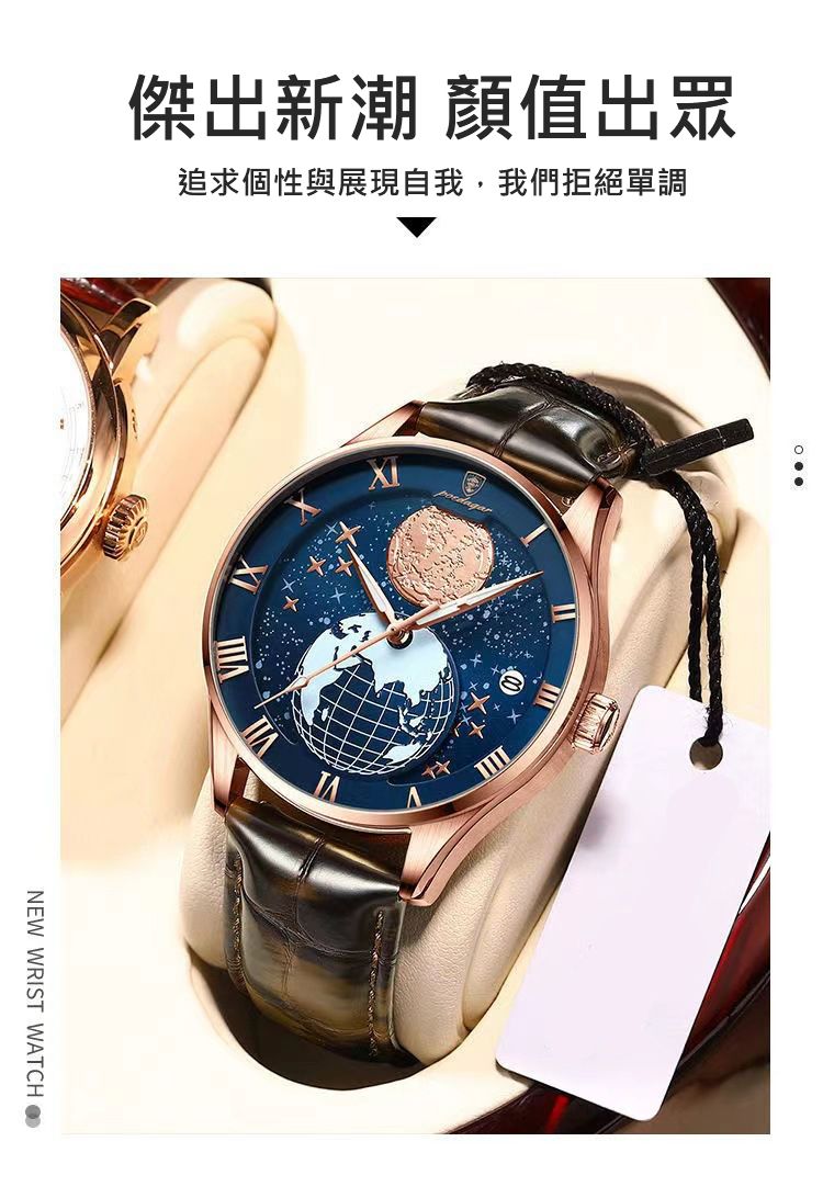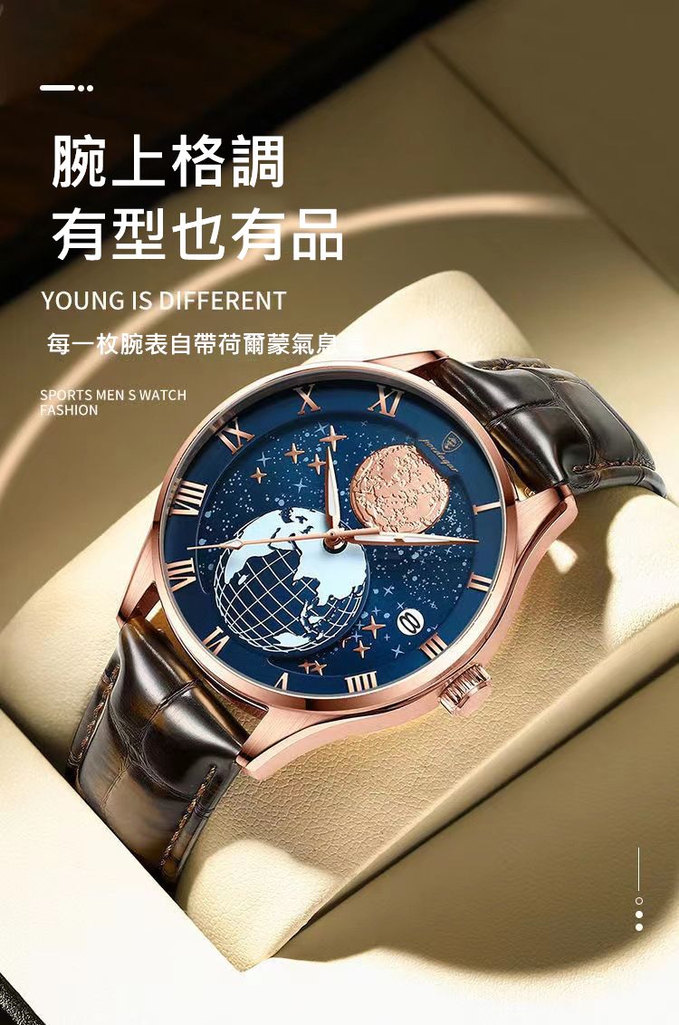 超薄日曆款防水夜光男士手錶【玫金殼藍面】一組