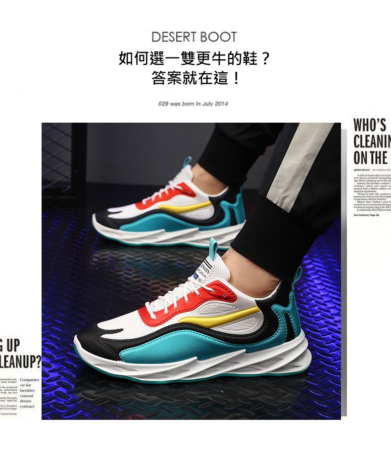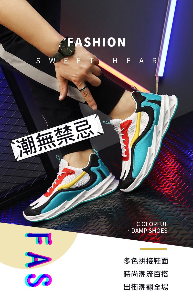 運動風多色拼接鞋面刀鋒男鞋【藍黑紅色】+【灰白黑色】各一雙(優惠400)