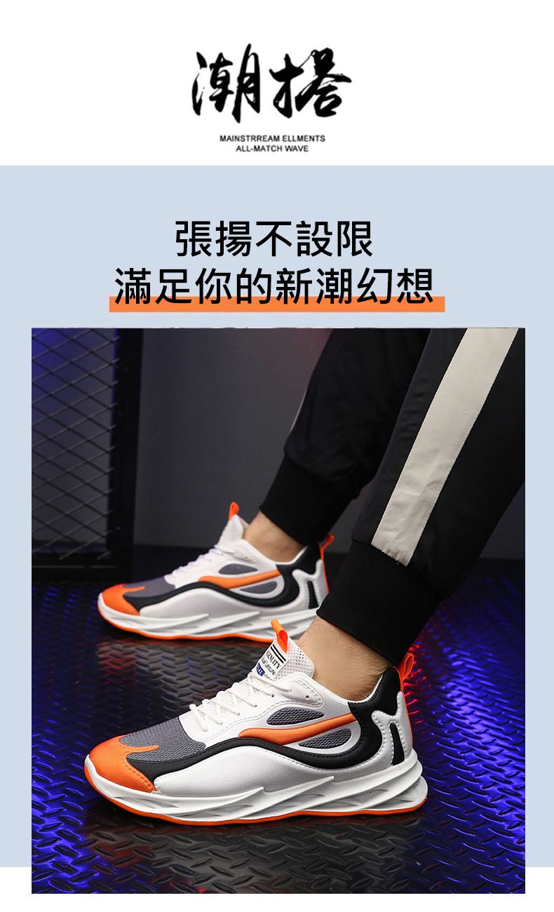 運動風多色拼接鞋面刀鋒男鞋【橘黑灰色】+【灰白黑色】各一雙(優惠400)
