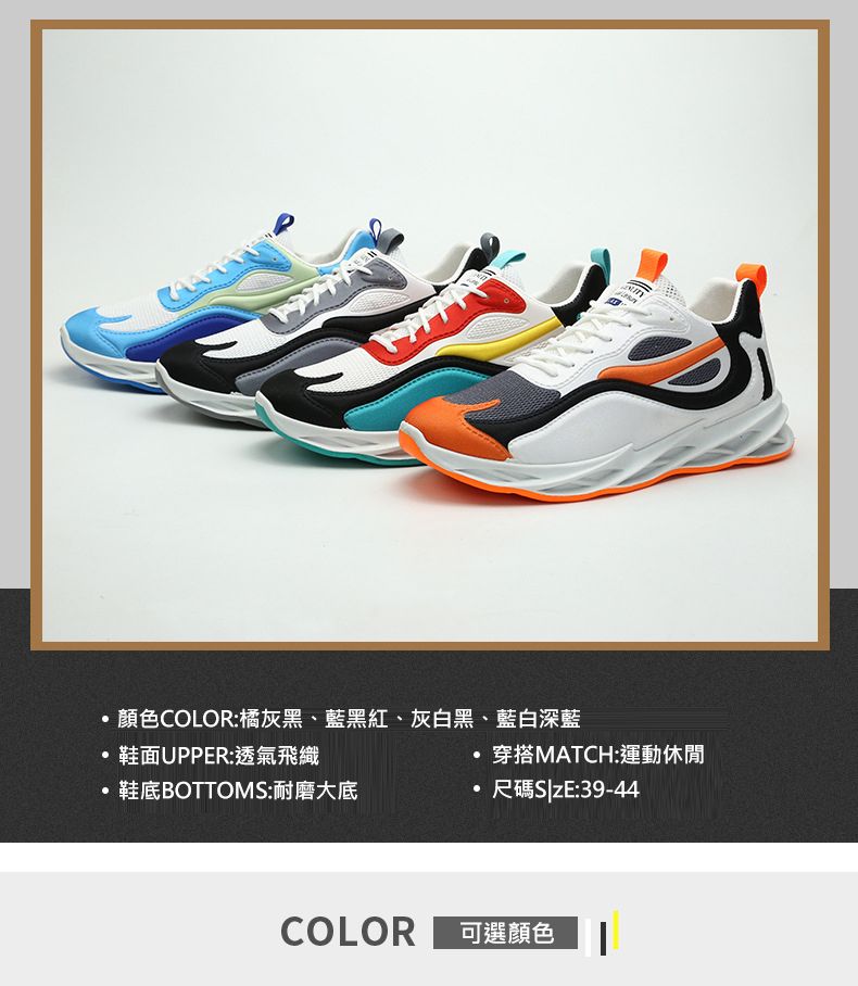 運動風多色拼接鞋面刀鋒男鞋【橘黑灰色】+【藍白深藍色】各一雙(優惠400)