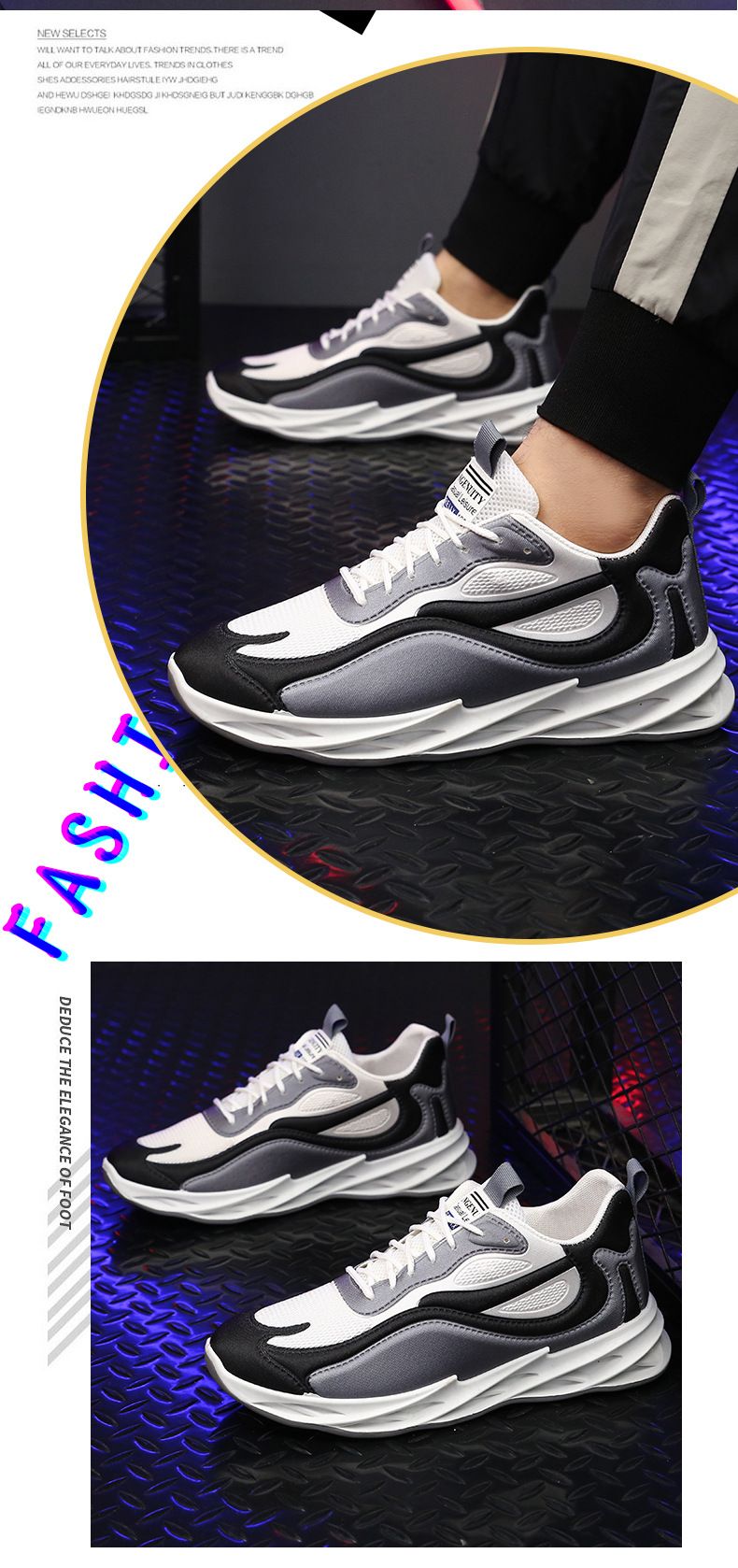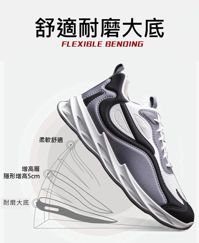 運動風多色拼接鞋面刀鋒男鞋【灰白黑色】一雙