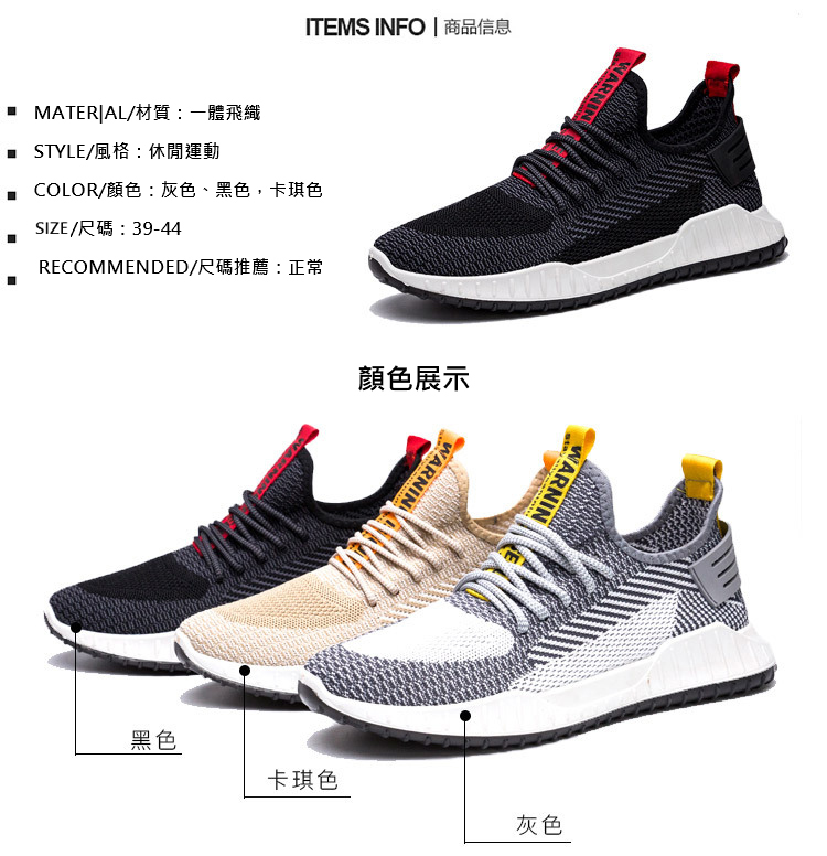柔韌透氣輕便緩震一體飛織跑鞋【買一送一】【黑色】+【卡其色】各一雙