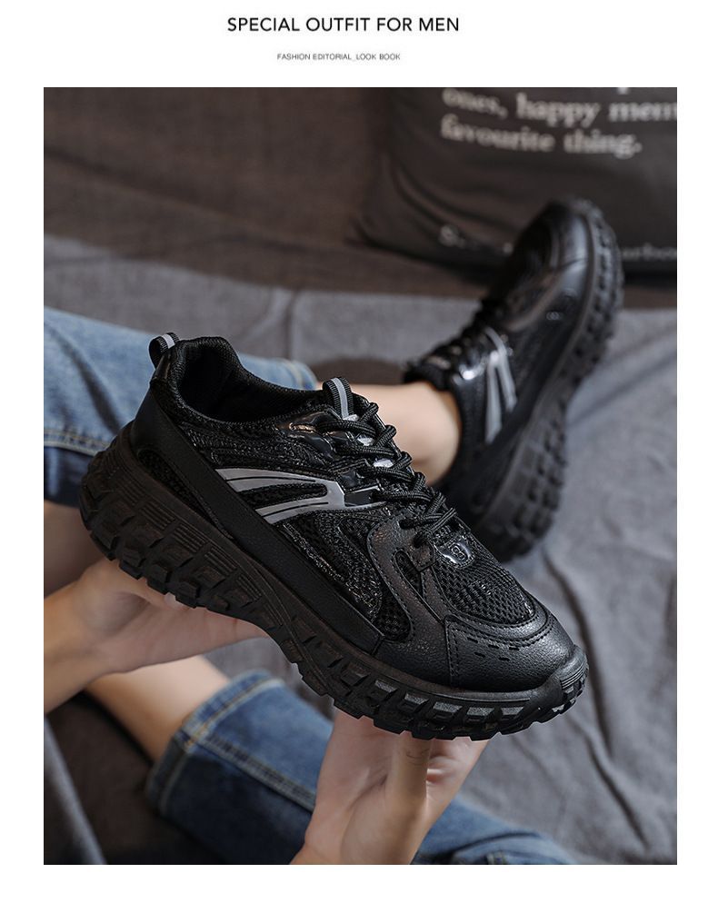 【舒適增高5cm!】新款女士透氣休閒輪胎底老爹鞋【黑色】一雙