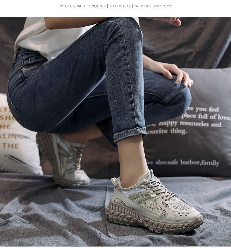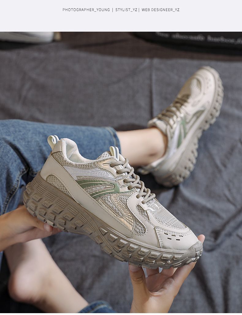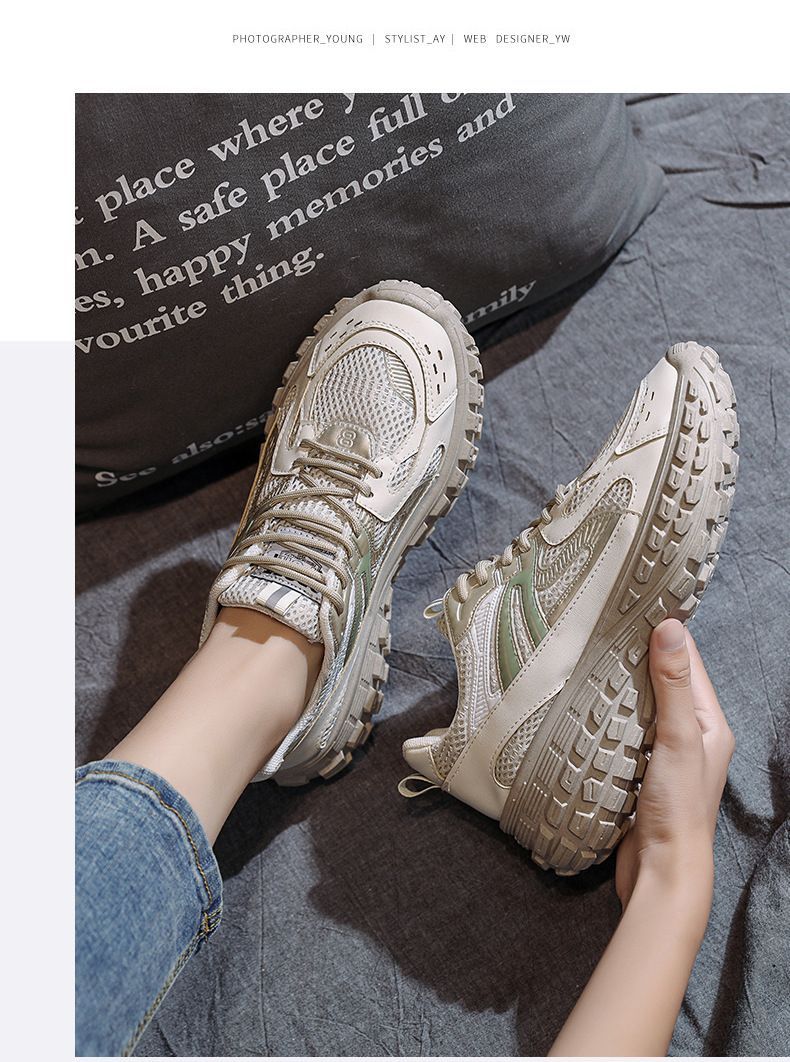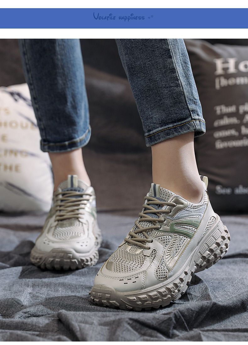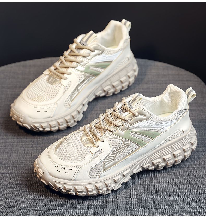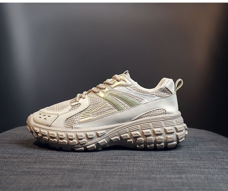 【舒適增高5cm!】新款女士透氣休閒輪胎底老爹鞋【米色】一雙