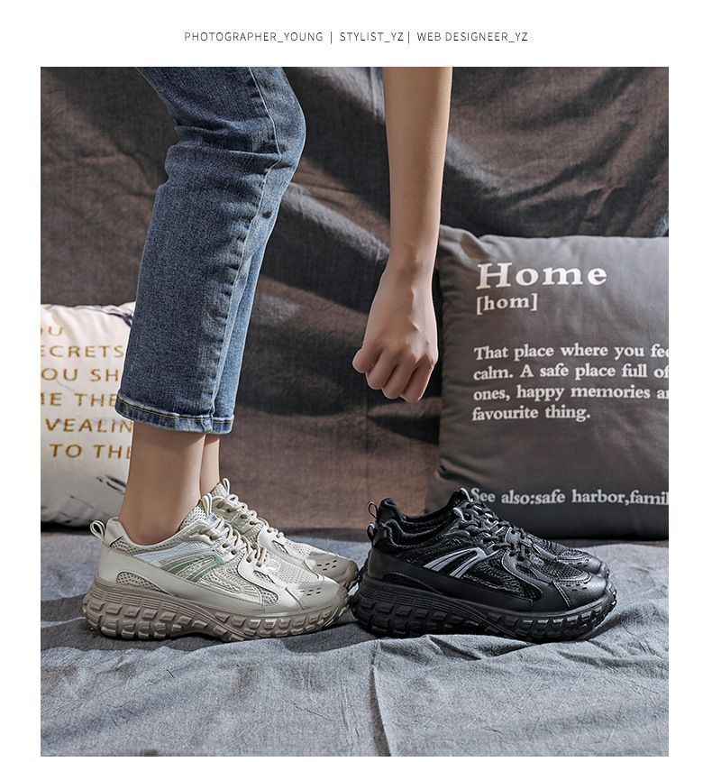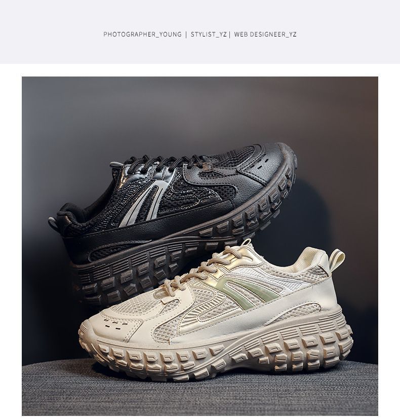【舒適增高5cm!】新款女士透氣休閒輪胎底老爹鞋【黑色】+【米色】各一雙(優惠400)