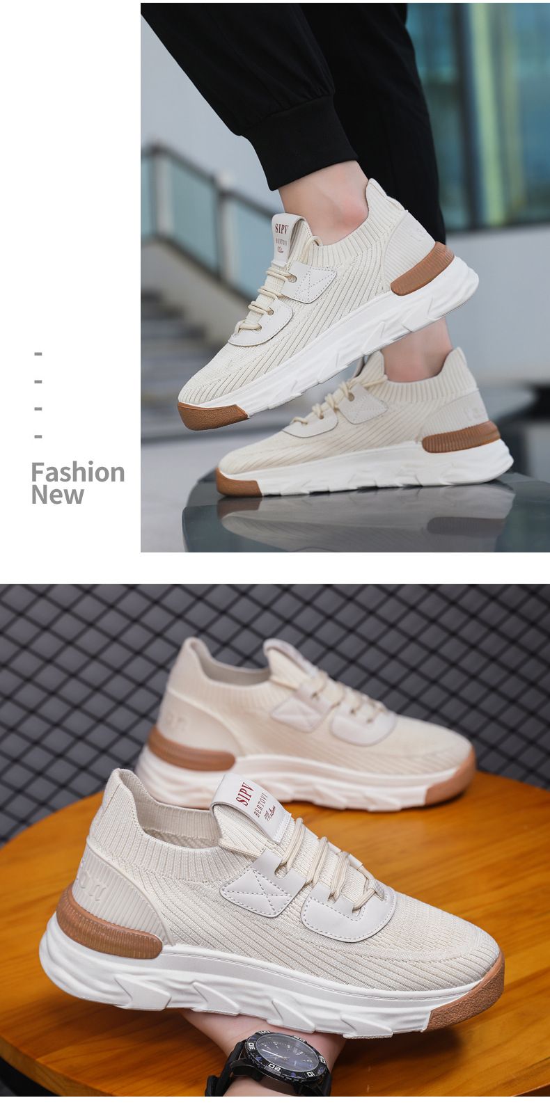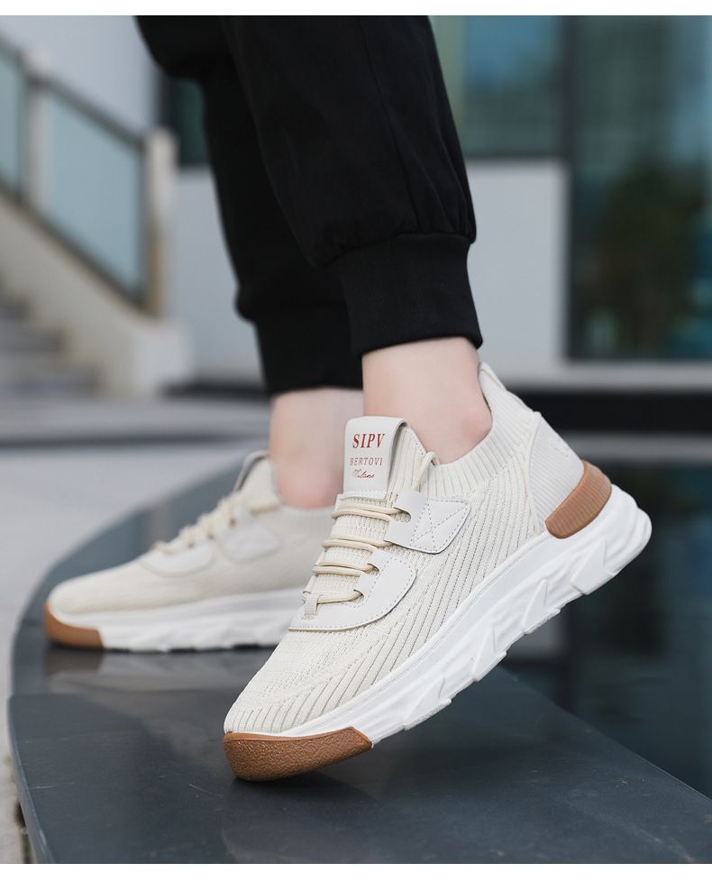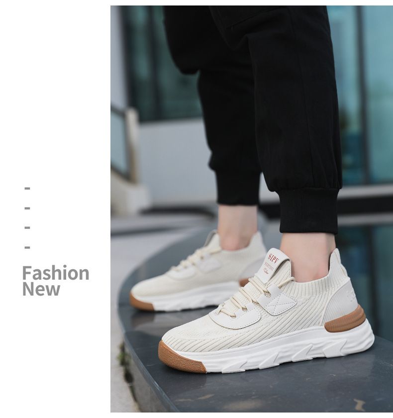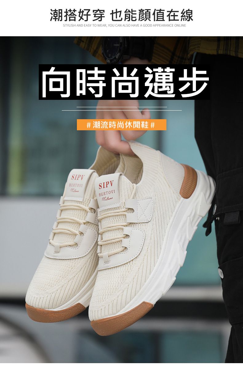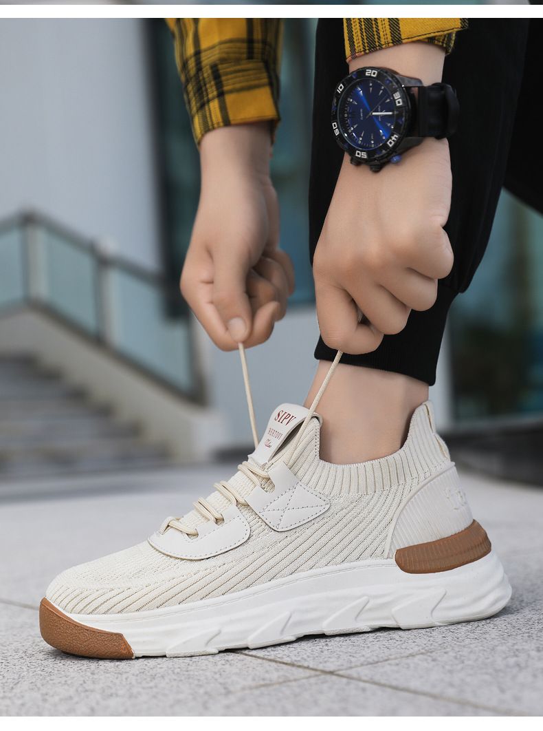 【無拘無束!】大碼春秋透氣針織男運動鞋【米色】一雙