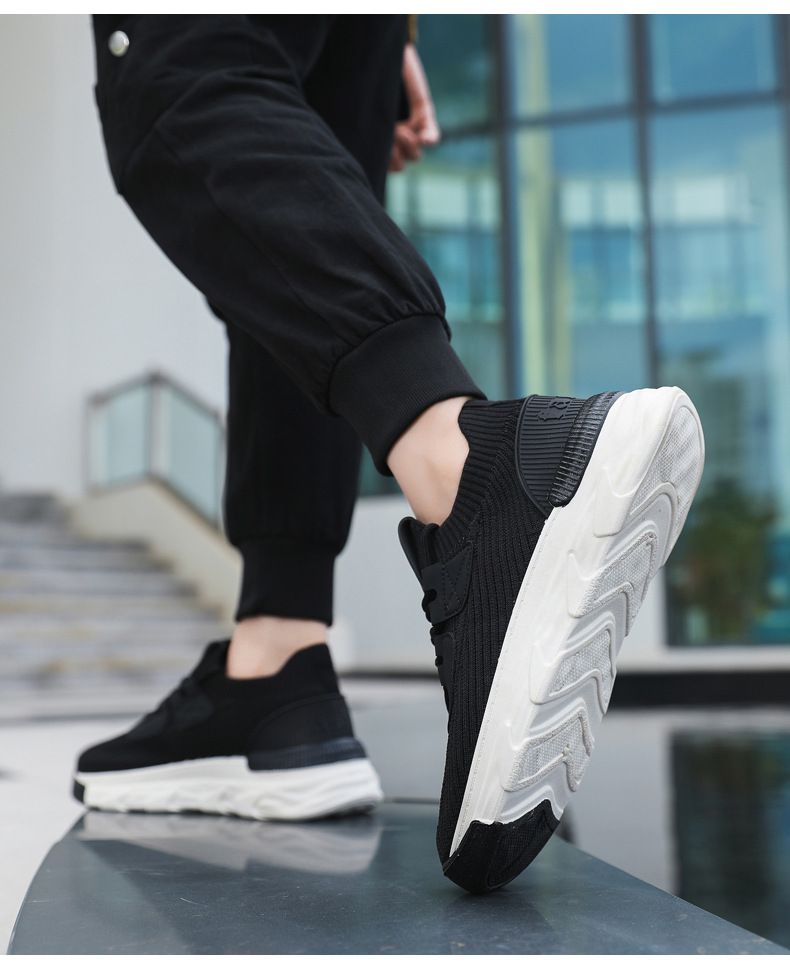 【無拘無束!】大碼春秋透氣針織男運動鞋【黑色】一雙
