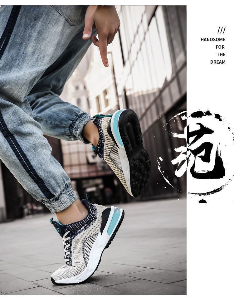 【厚底增高】透氣潮流休閒時尚男運動鞋【米色】一雙