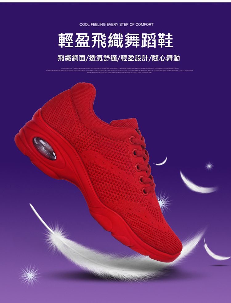 新款舒適百搭防震氣囊底輕盈飛織舞蹈鞋【紅色】+【白色】各一雙(優惠400)
