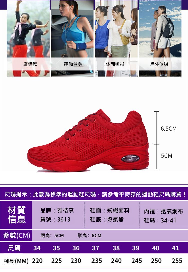 潮流時尚新款駕到、專為運動舞蹈的設計、女士運動增高鞋、透氣、舒服、加棉、安全、好看、百搭