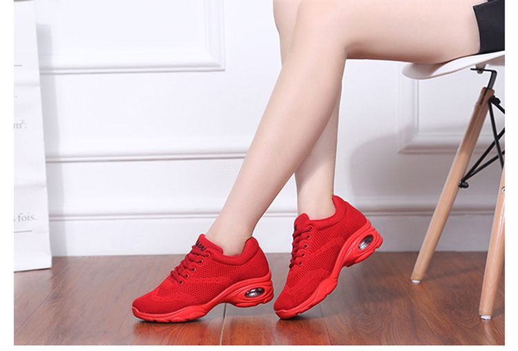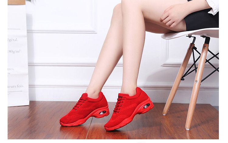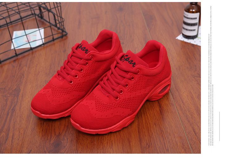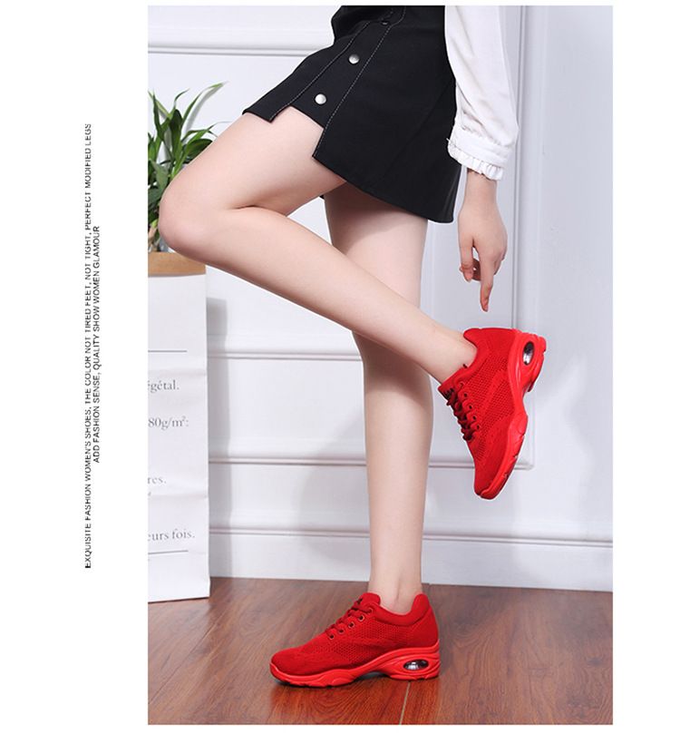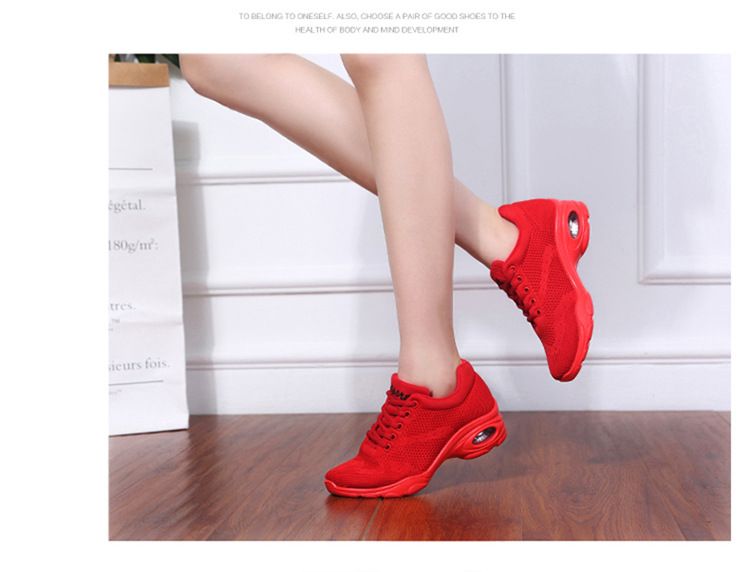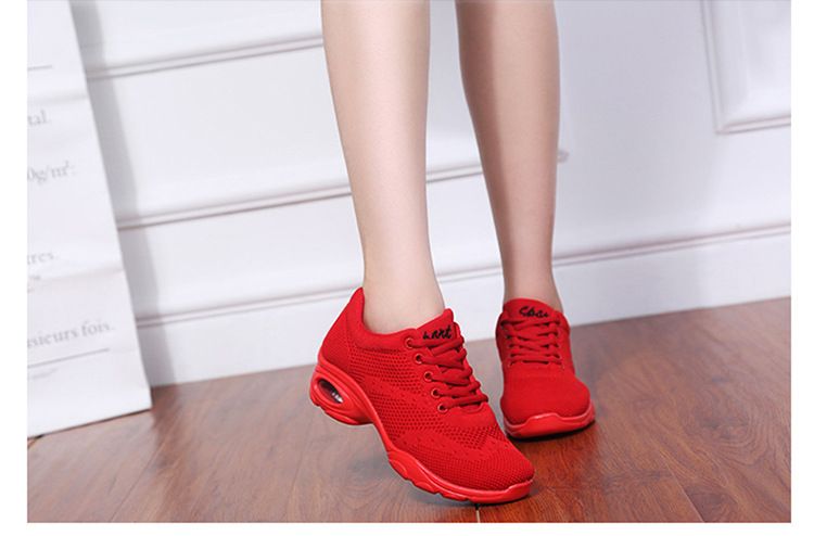 新款舒適百搭防震氣囊底輕盈飛織舞蹈鞋【紅色】一雙