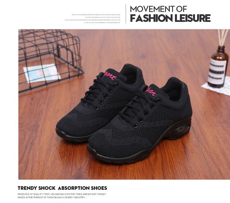 新款舒適百搭防震氣囊底輕盈飛織舞蹈鞋【黑色】一雙