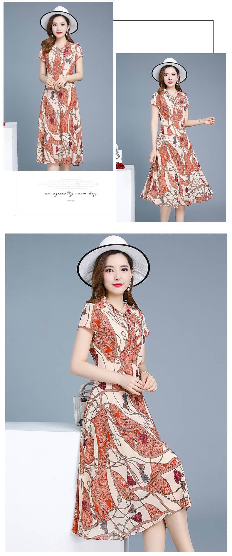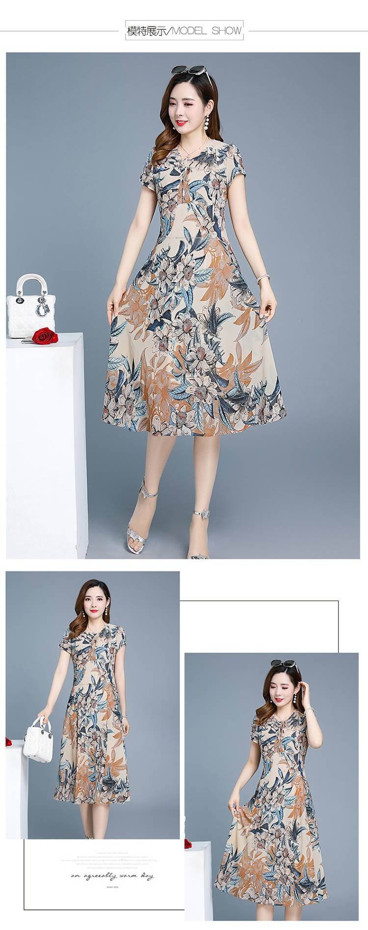 氣質清涼媽媽中長款連衣裙【秒殺4件!】藍色+磚紅色各2件(到手4件,每件均價399元)