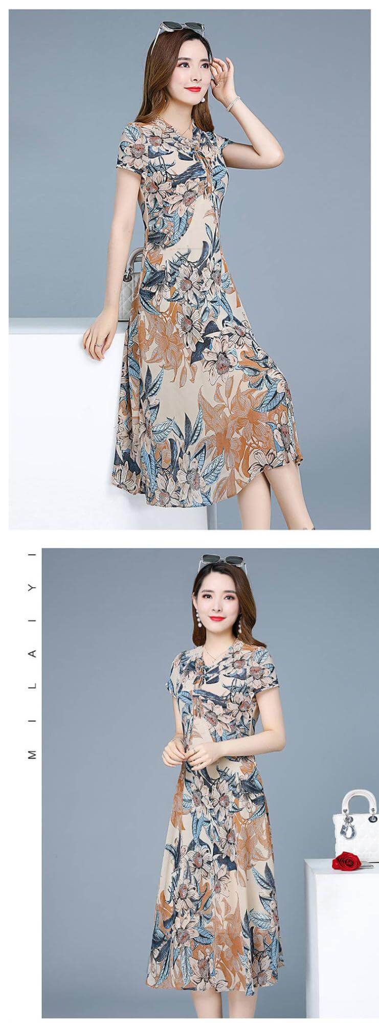 氣質清涼媽媽中長款連衣裙【買一送一】藍色+磚紅色各一件(到手兩件,每件均價499元)