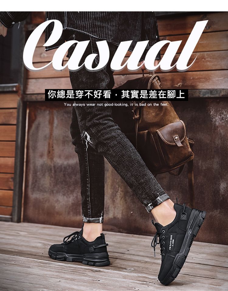 【復古工裝范】男士戶外休閒鞋【黑色】一雙